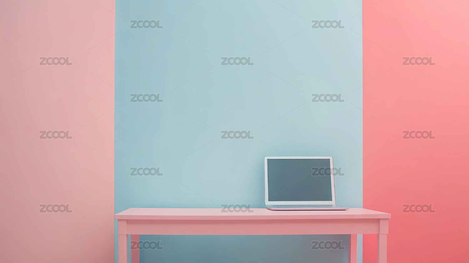 简约双色背景下的电脑桌