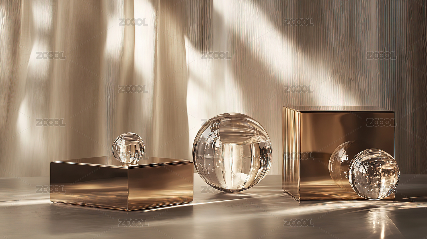 透明几何形状在柔和光线下的艺术展示