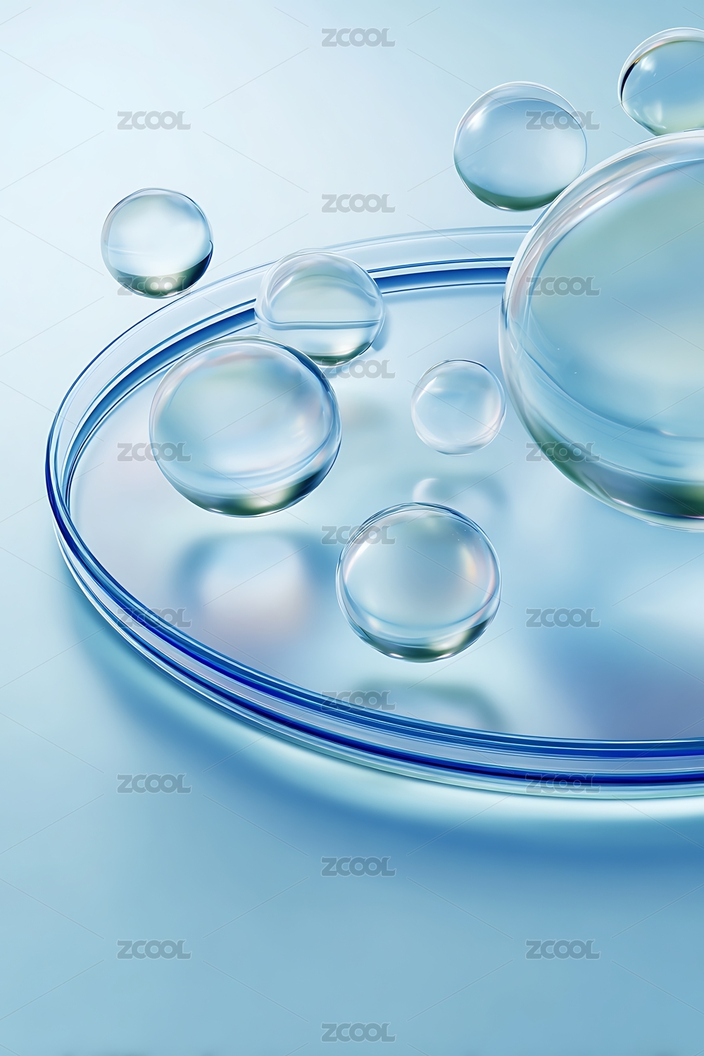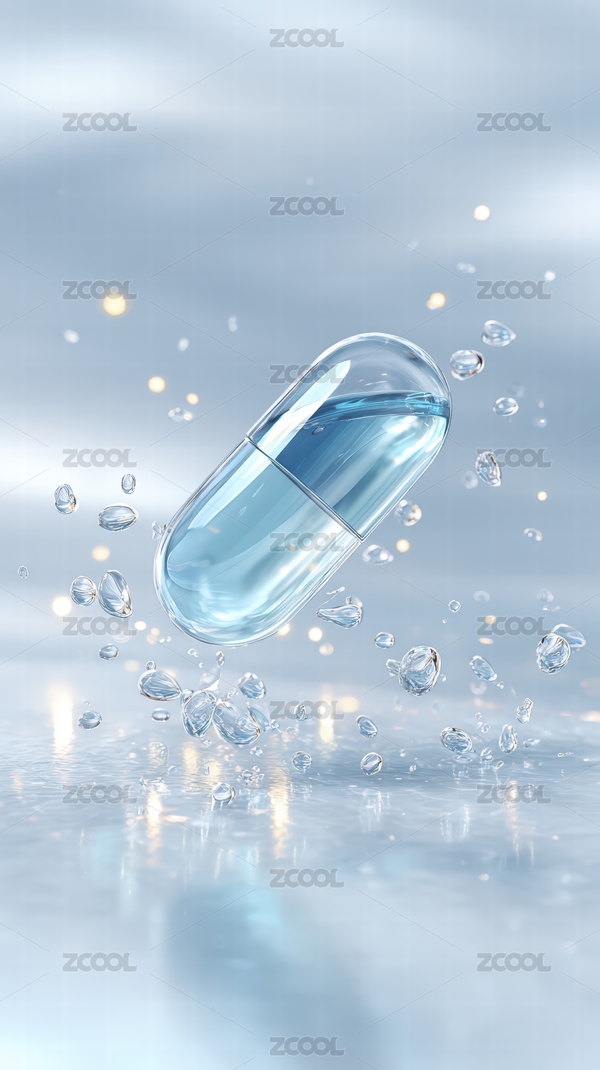 透明胶囊悬浮在水滴之中