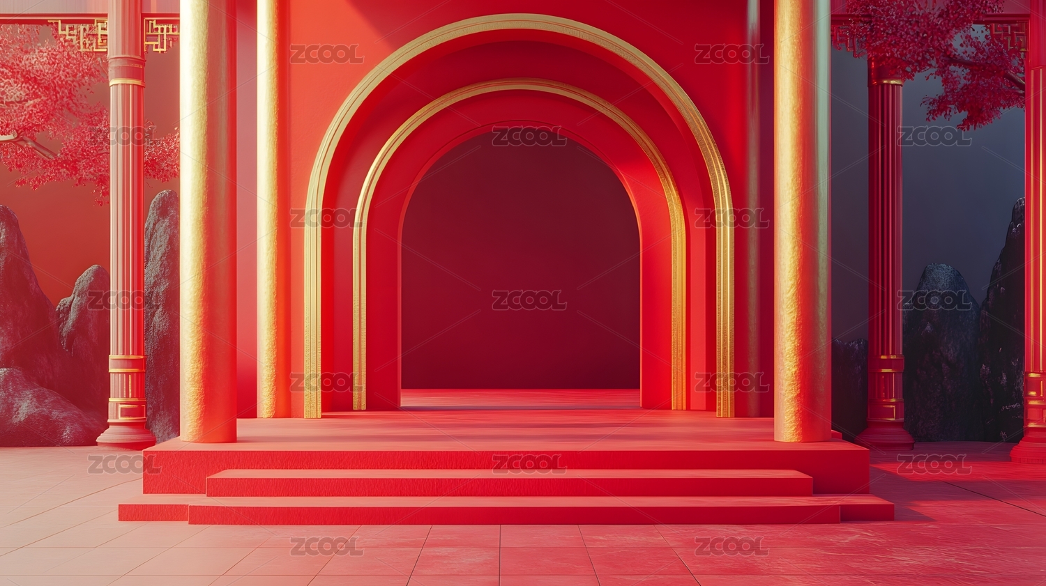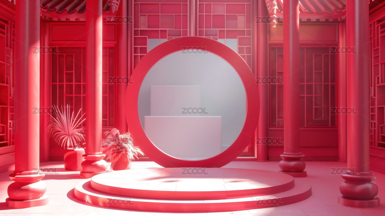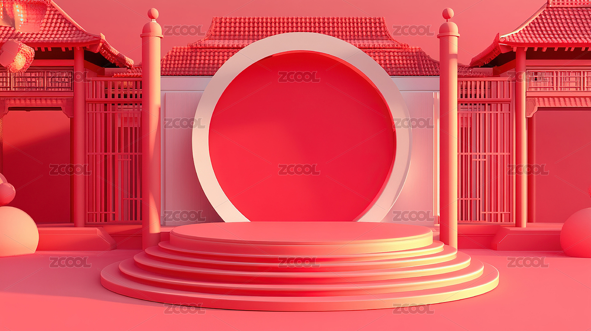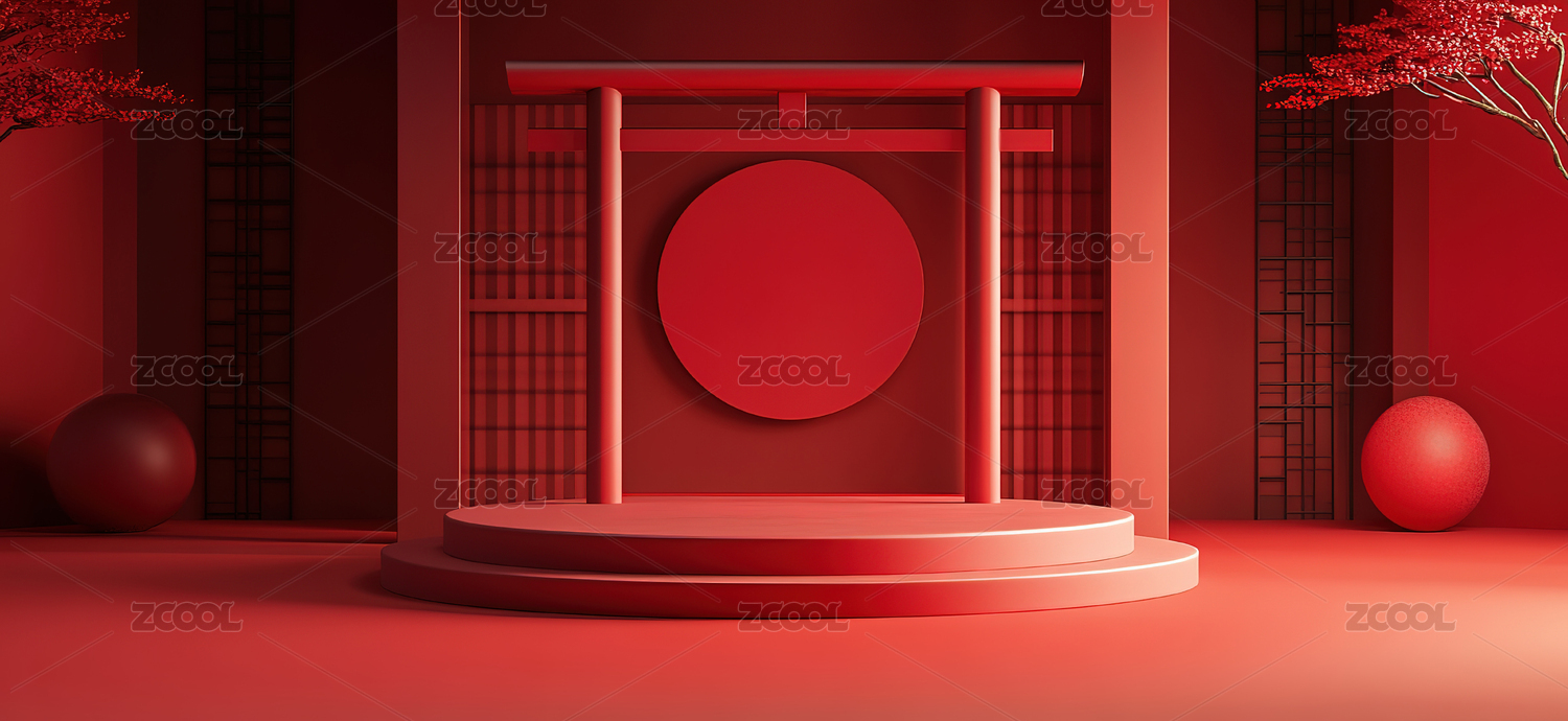 红色,春节,建筑,灯笼,快乐,新年,背景,促销,模板,插画