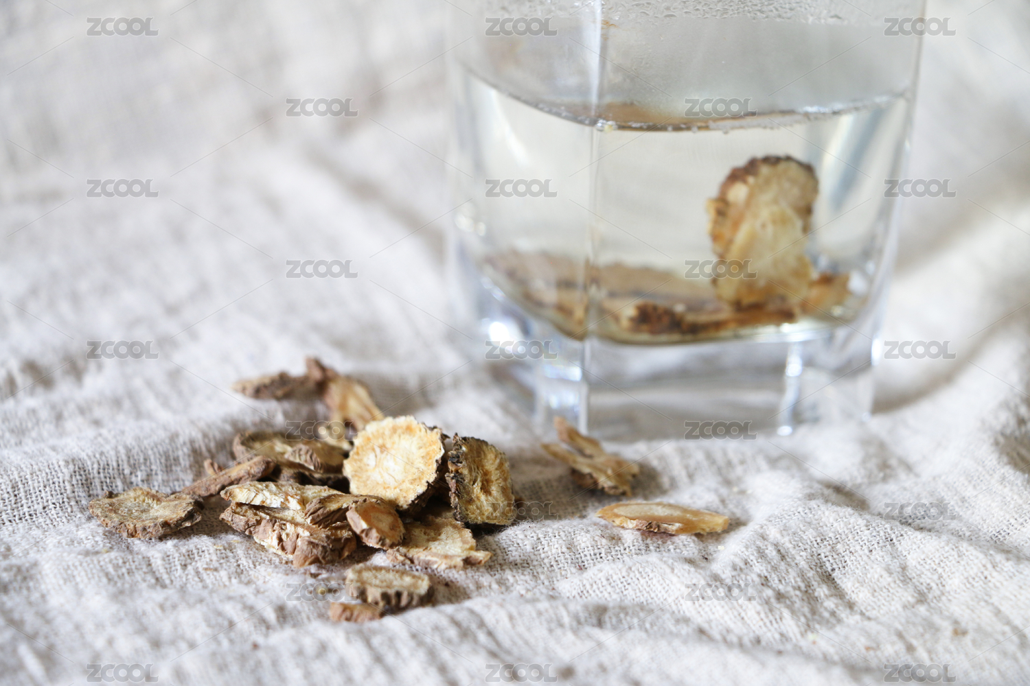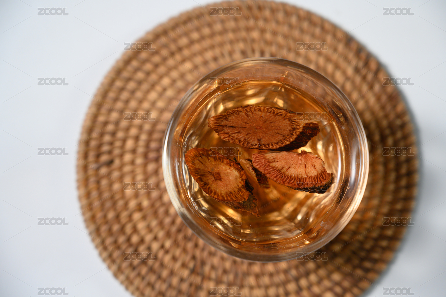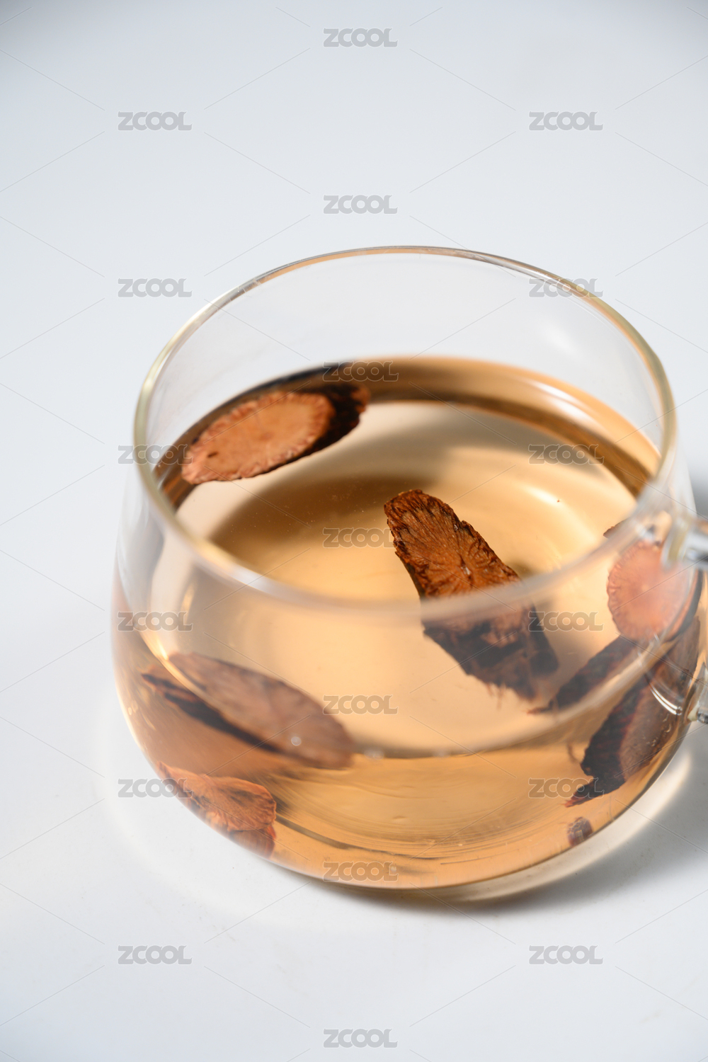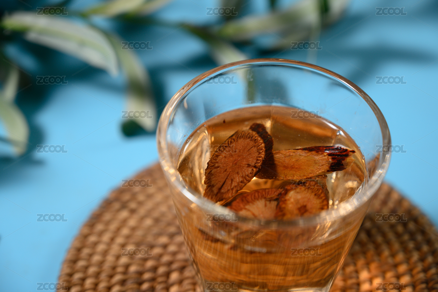 桌面上的杯子里的甘甜可口的夜交藤茶