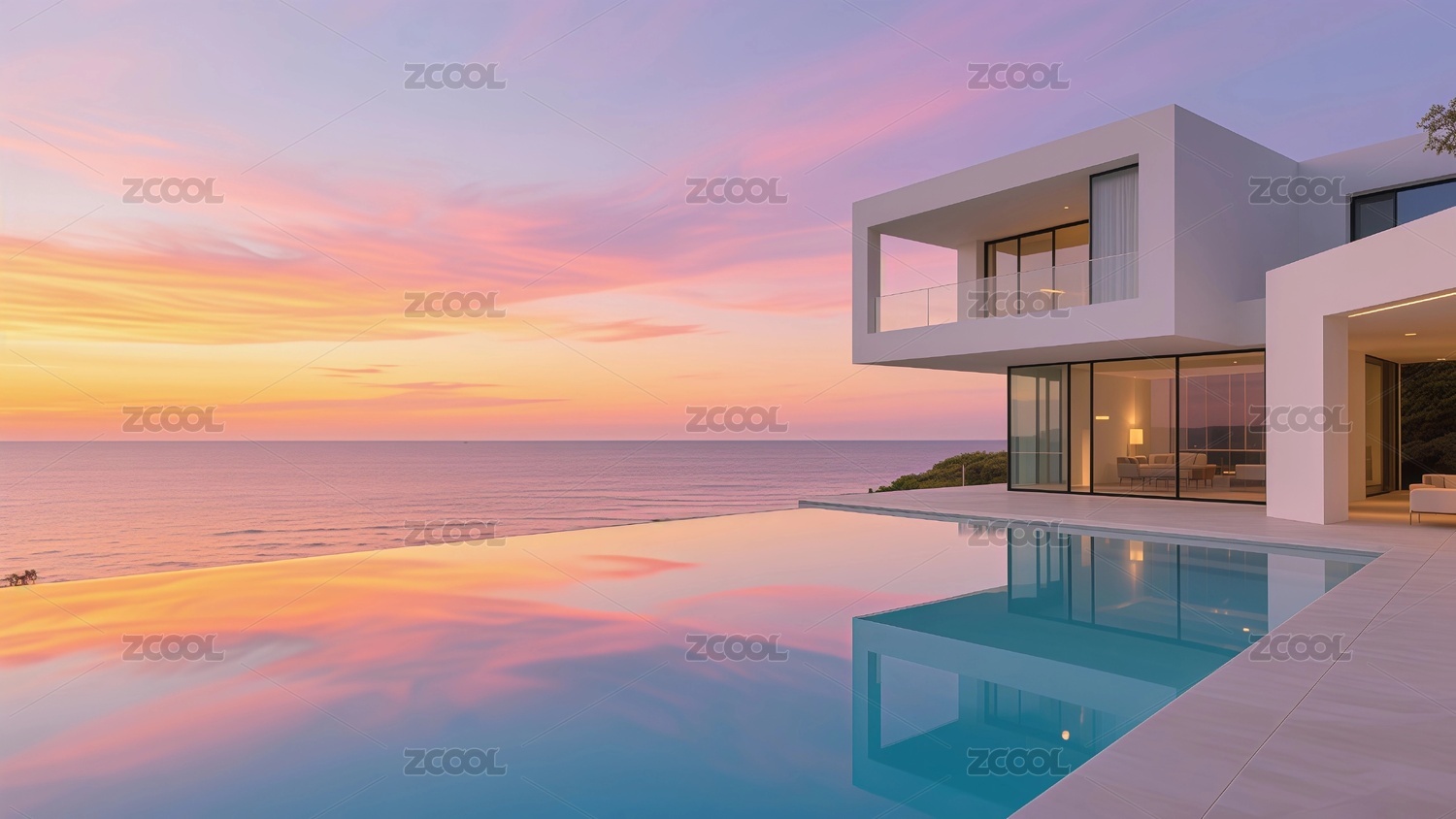 AIGC202401,现代,建筑,别墅,背景,风景,海边