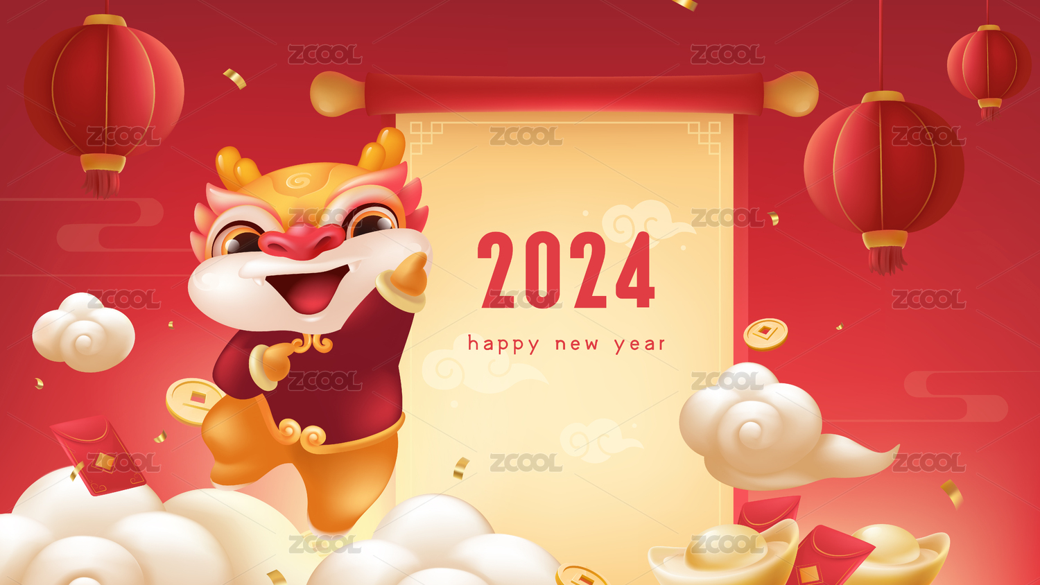 卡通2020鼠年新年舞狮中国风背景矢量插画