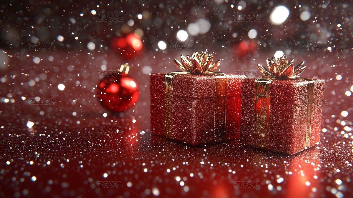 圣诞节红色礼物和雪花场景