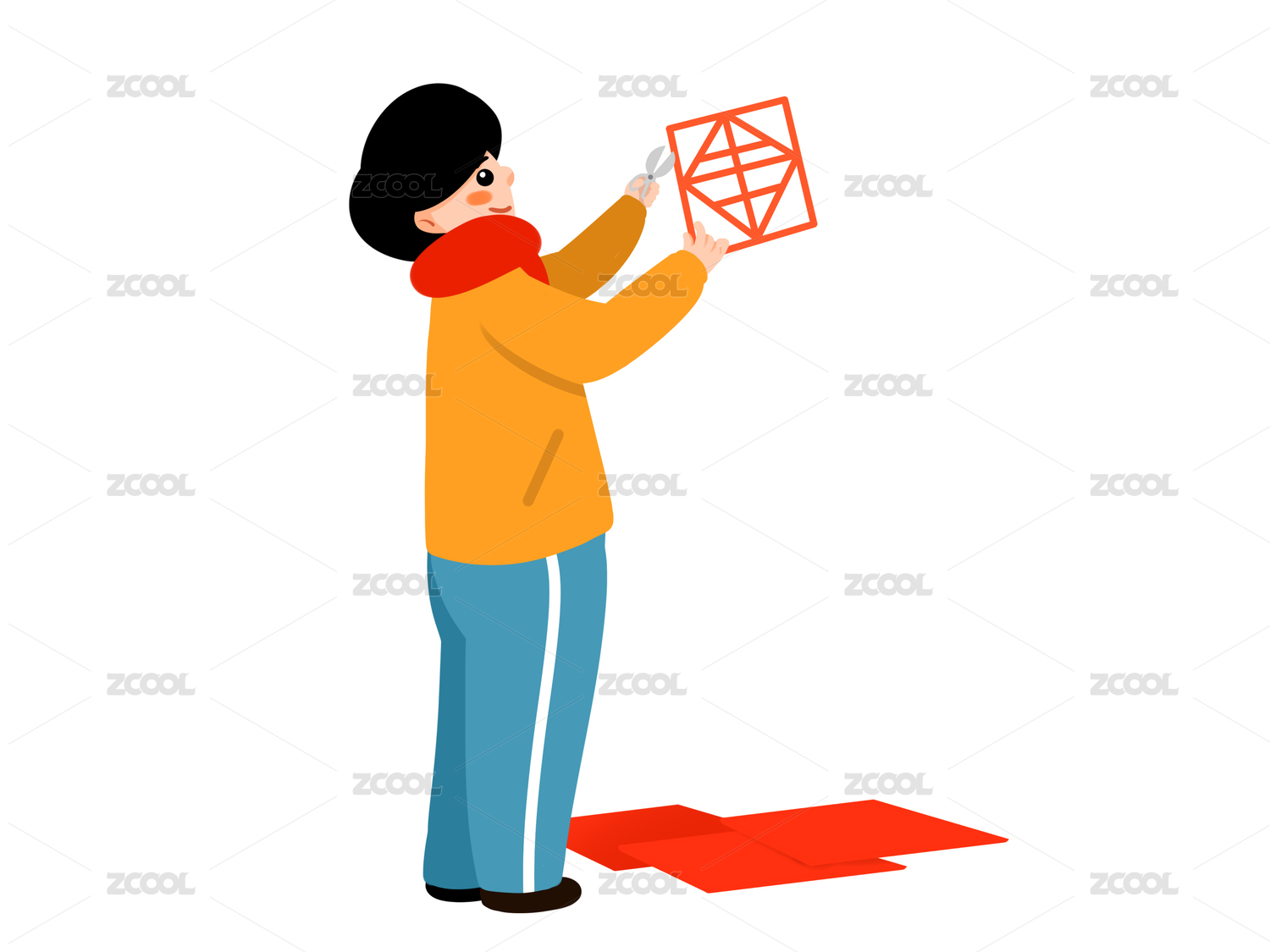 小寒剪窗花的剪纸红纸节气剪窗花剪子一个