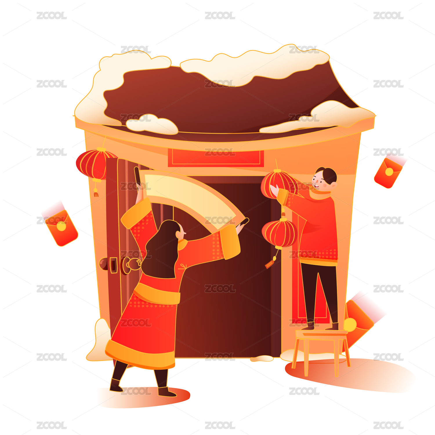 背景,插图,除夕,传统,电商,红包,回家,家人,节日,卡通