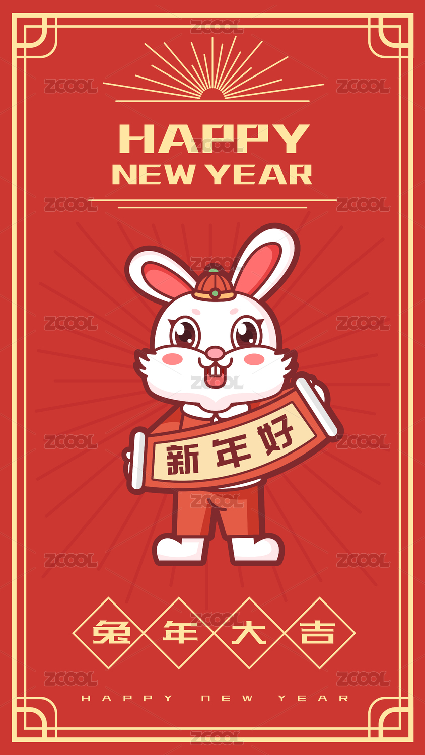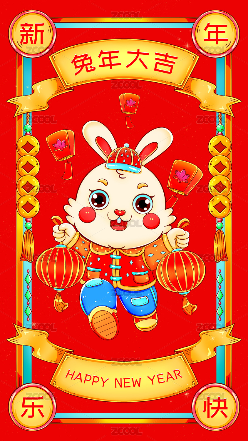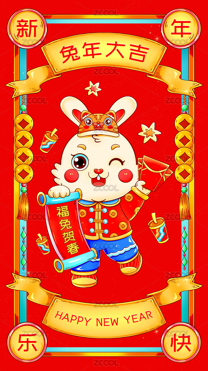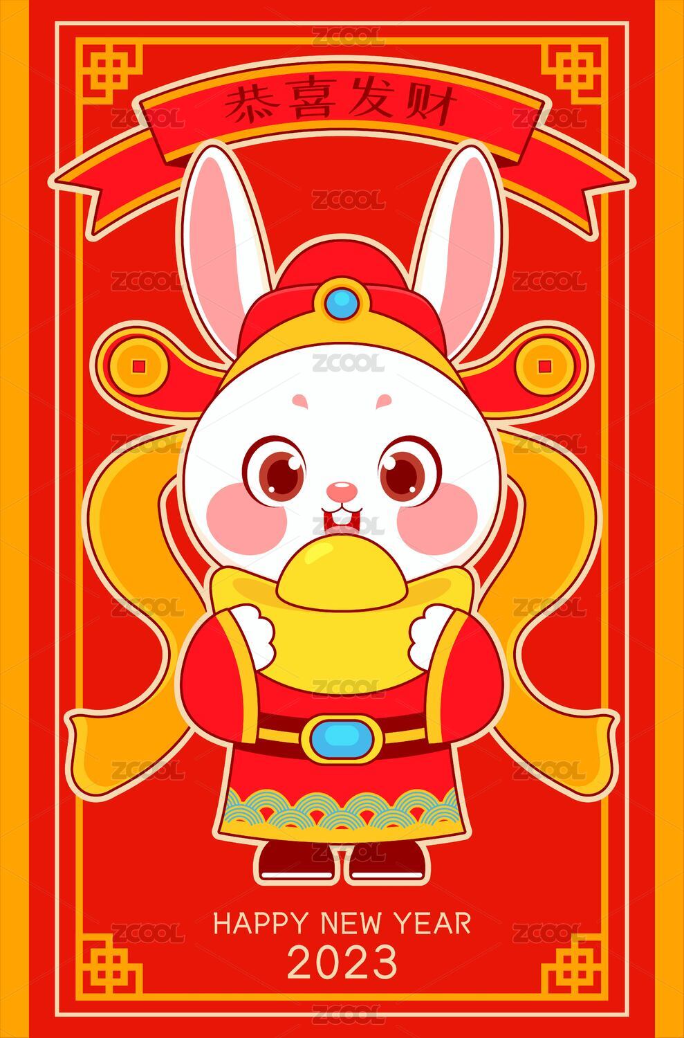 国潮,吉祥,卡通,可爱,兔年,兔子,兔,新年,春节,动物