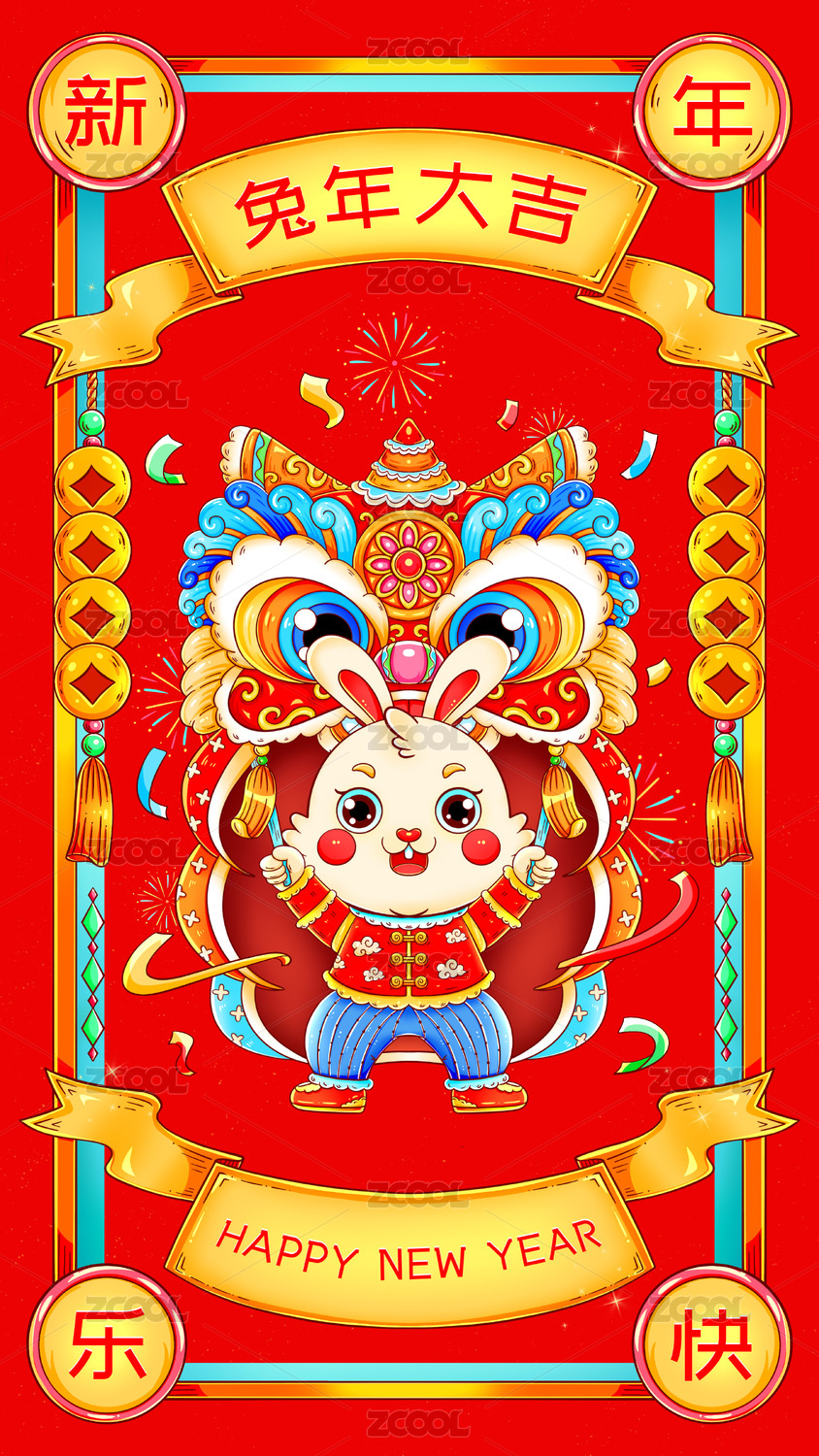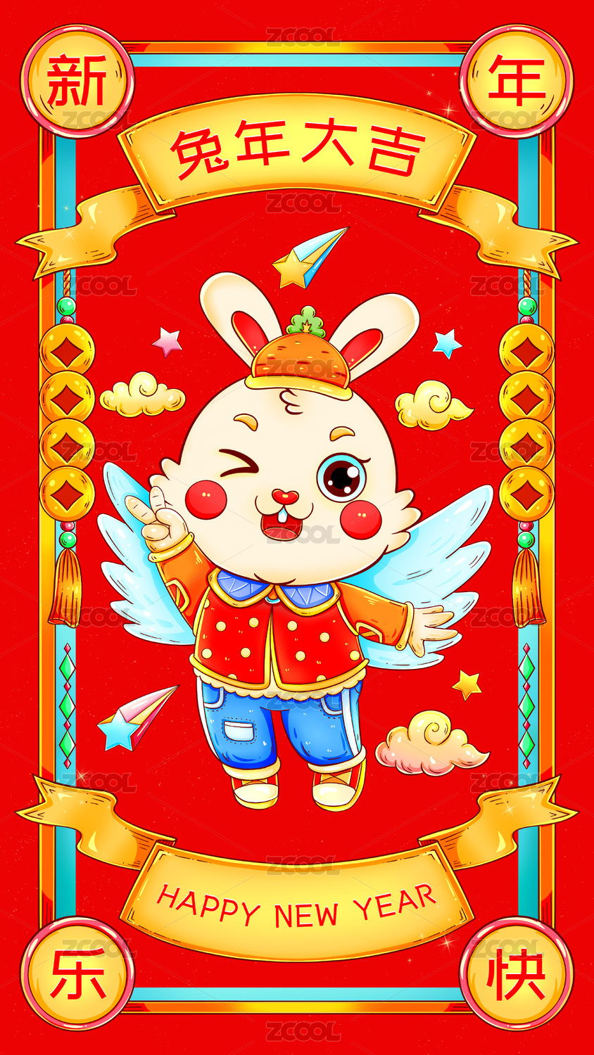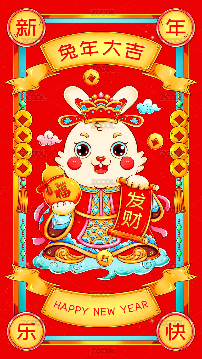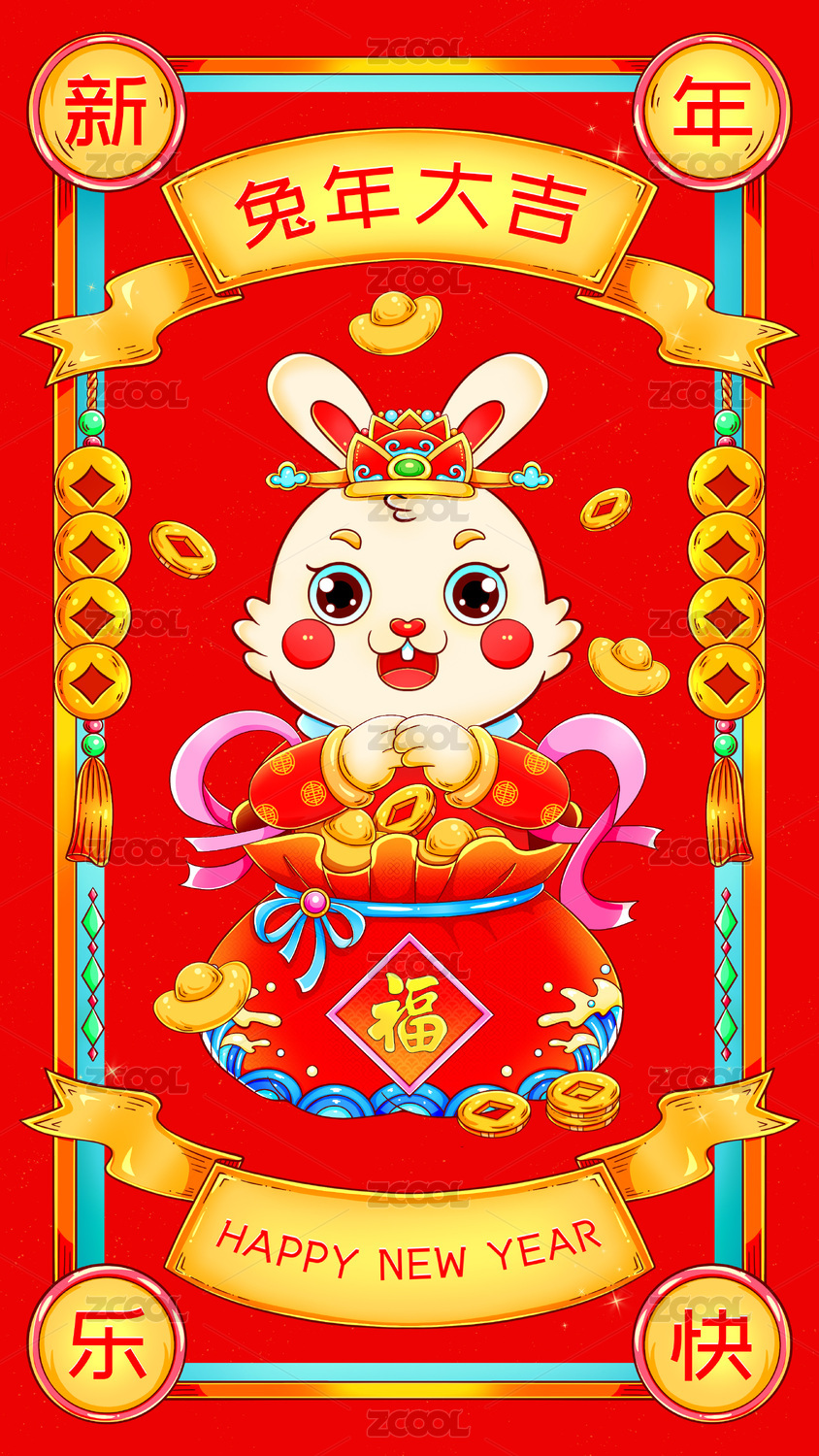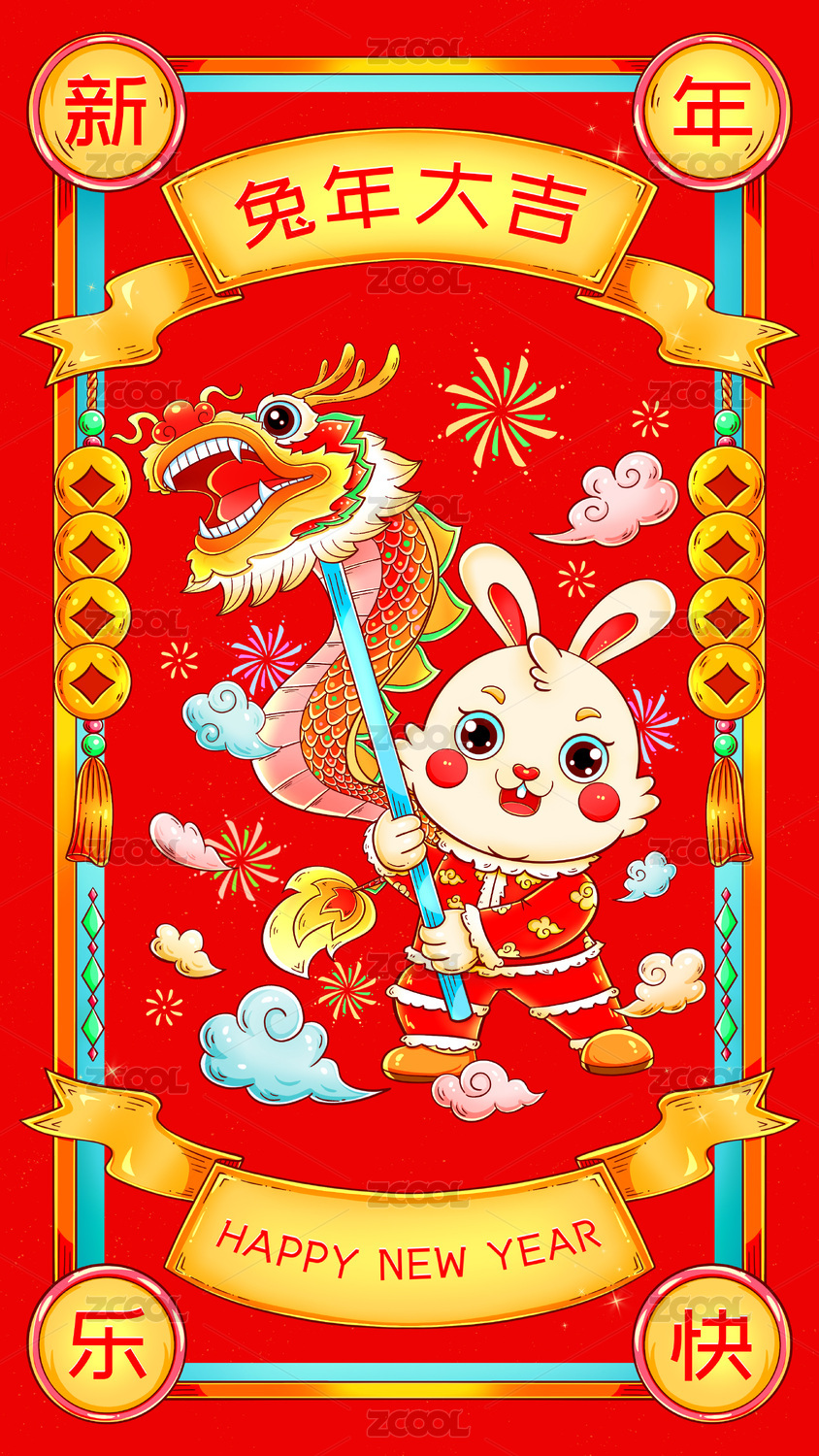 国潮,吉祥,卡通,可爱,兔年,兔子,兔,新年,春节,动物