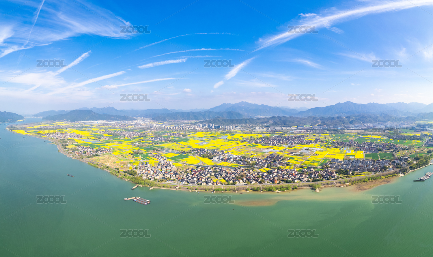 杭州富阳富春江包家淇春天乡村田园油菜花