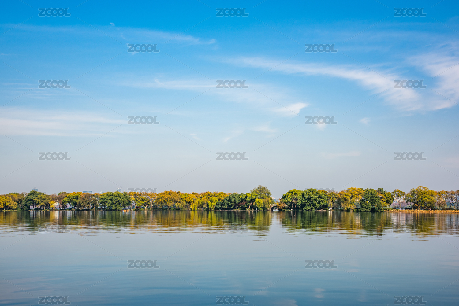 杭州,西湖,晴天,蓝天,白云,蓝色调,青天,城市,湖水,湖面