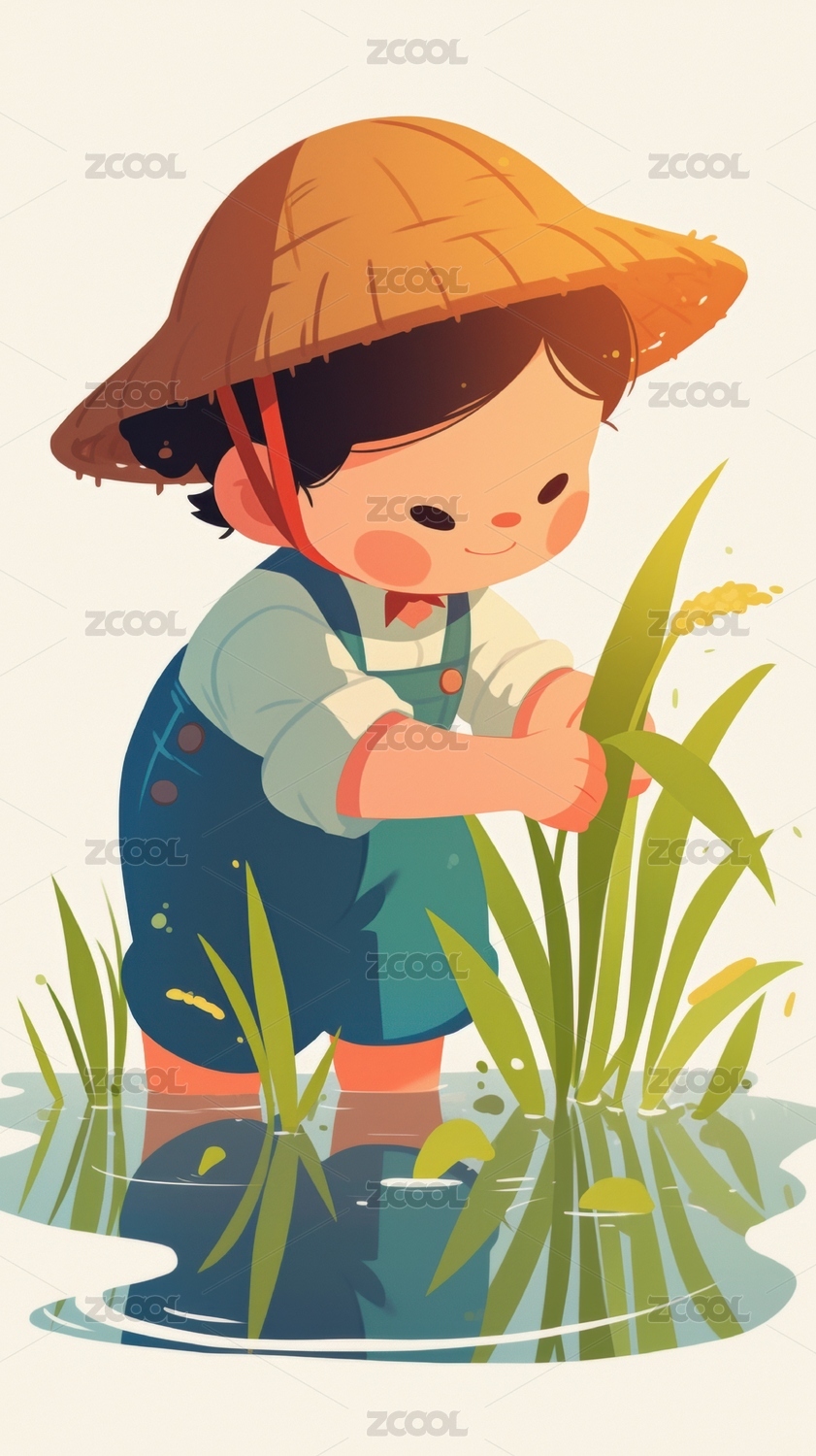 小孩在稻田里劳作