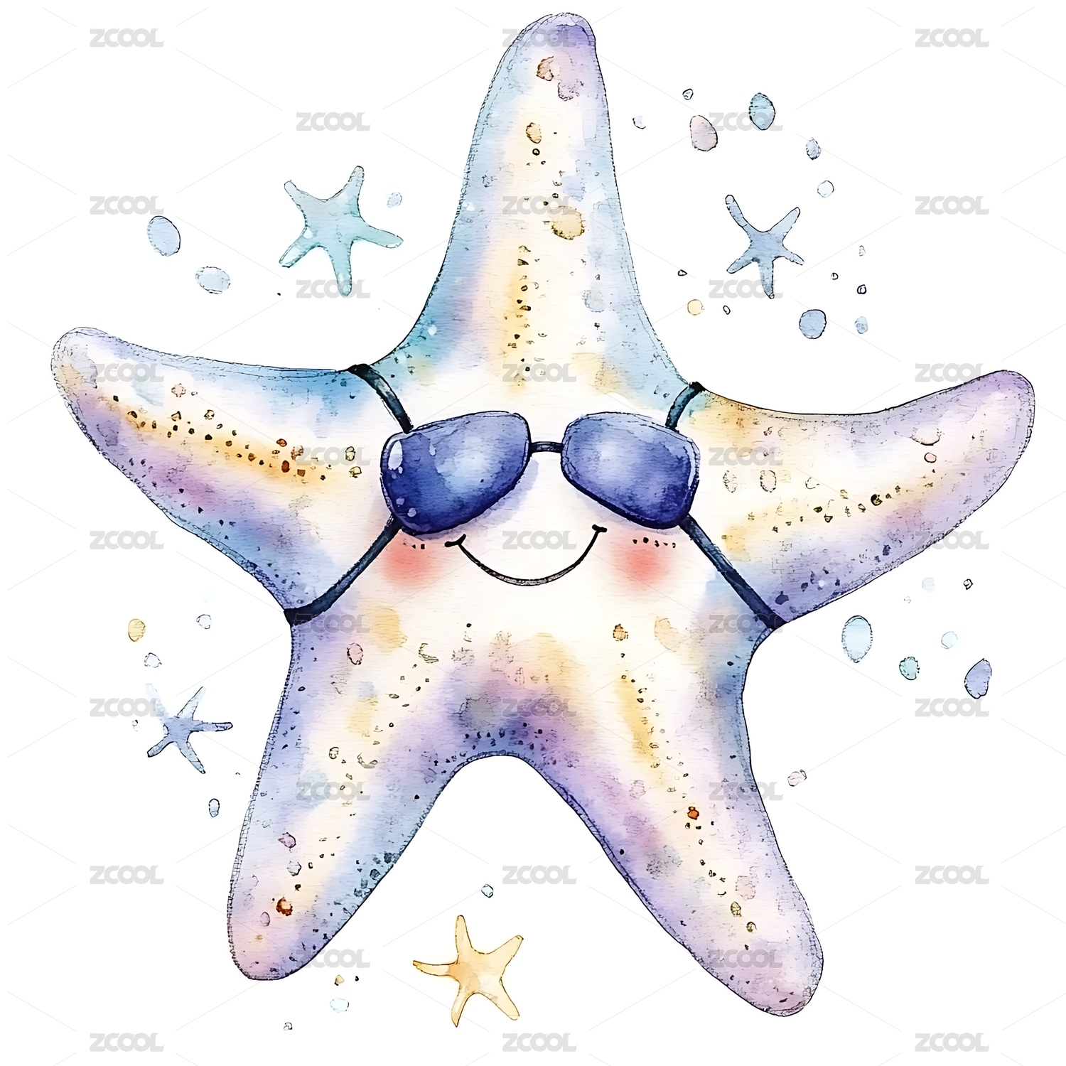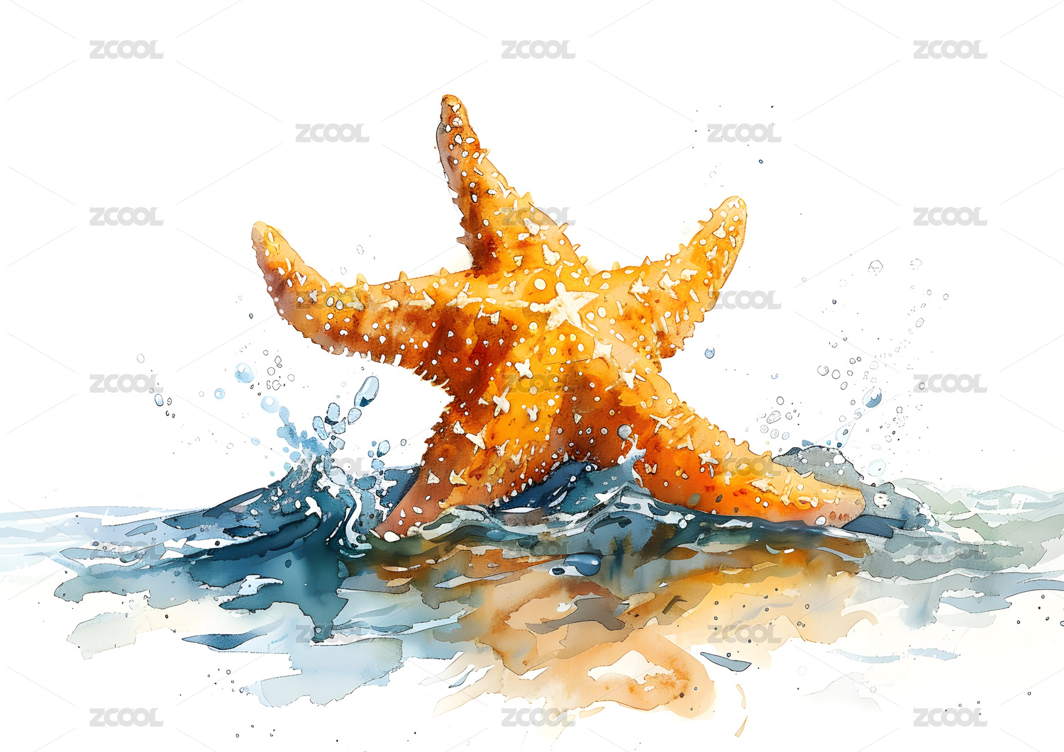 海星,插画,油画,特写,海底世界,海洋生物,水草,水彩