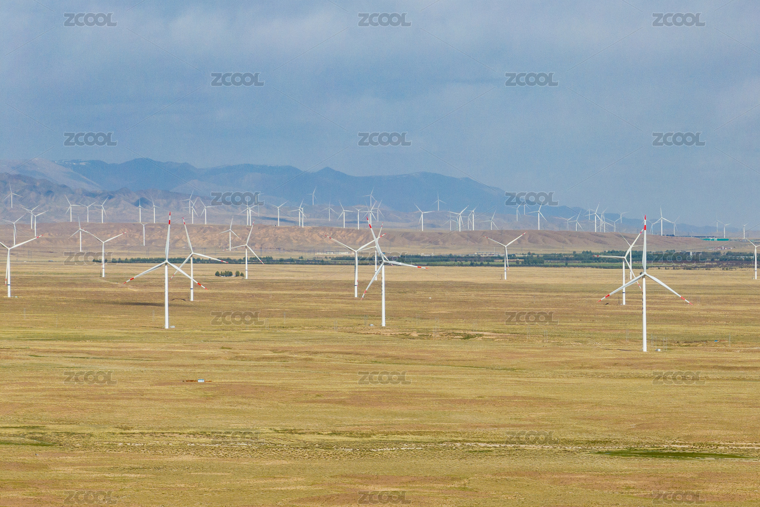 中国新疆风力发电与山地自然风光
