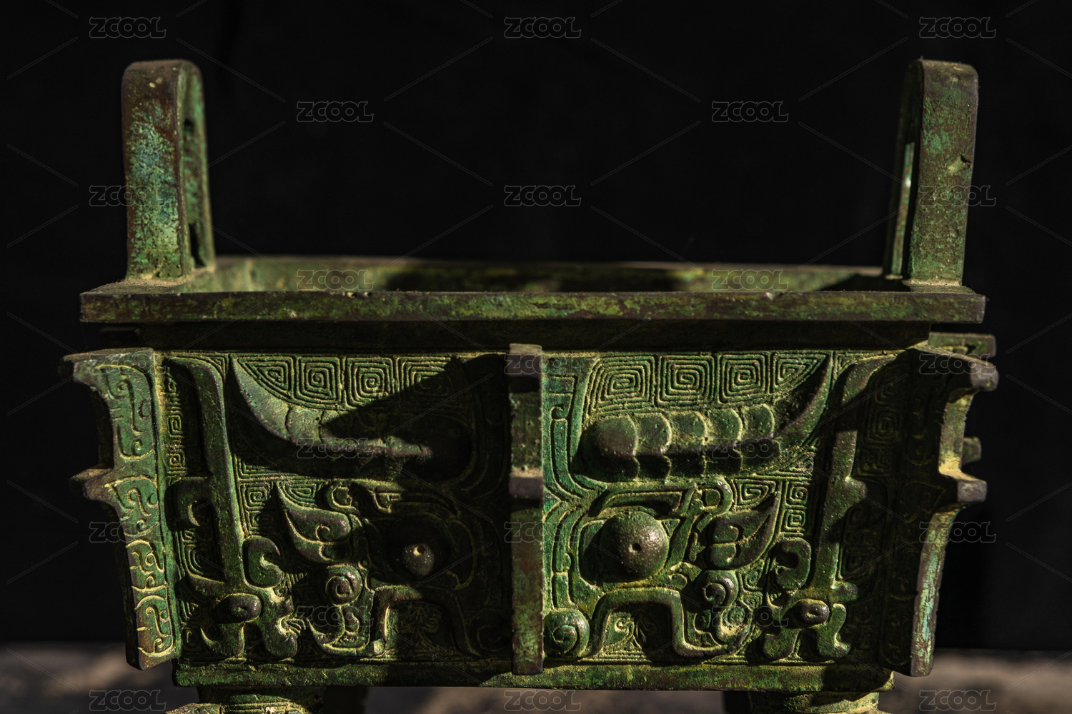 中国四川古蜀文明三星堆文物青铜兽面插画