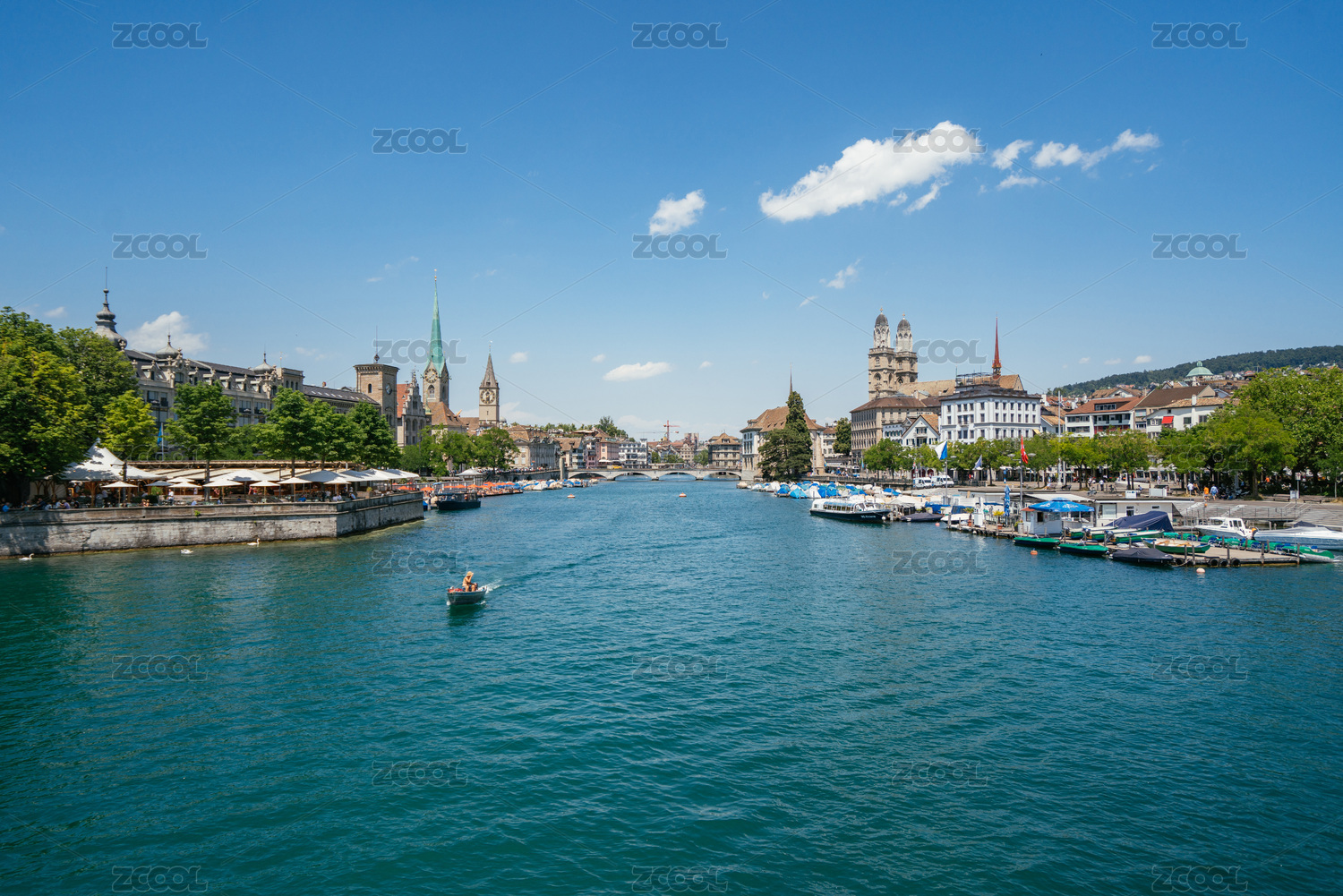 壮观的瑞士苏黎世大教堂与美丽的城市河流