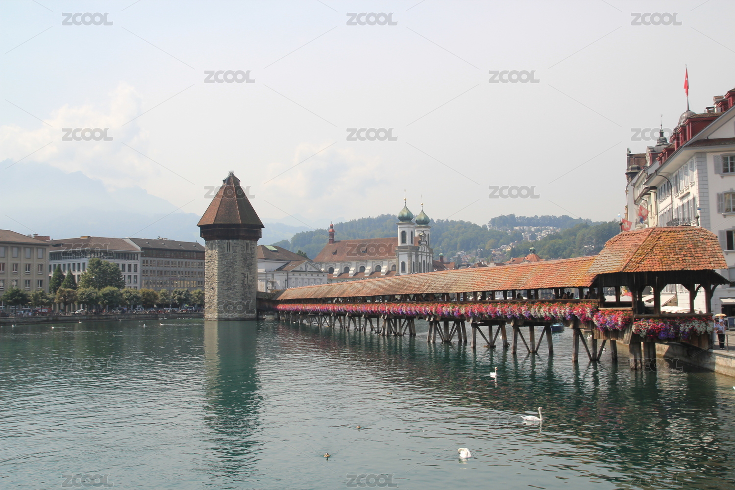 瑞士琉森卡佩尔廊桥自然与城市风光