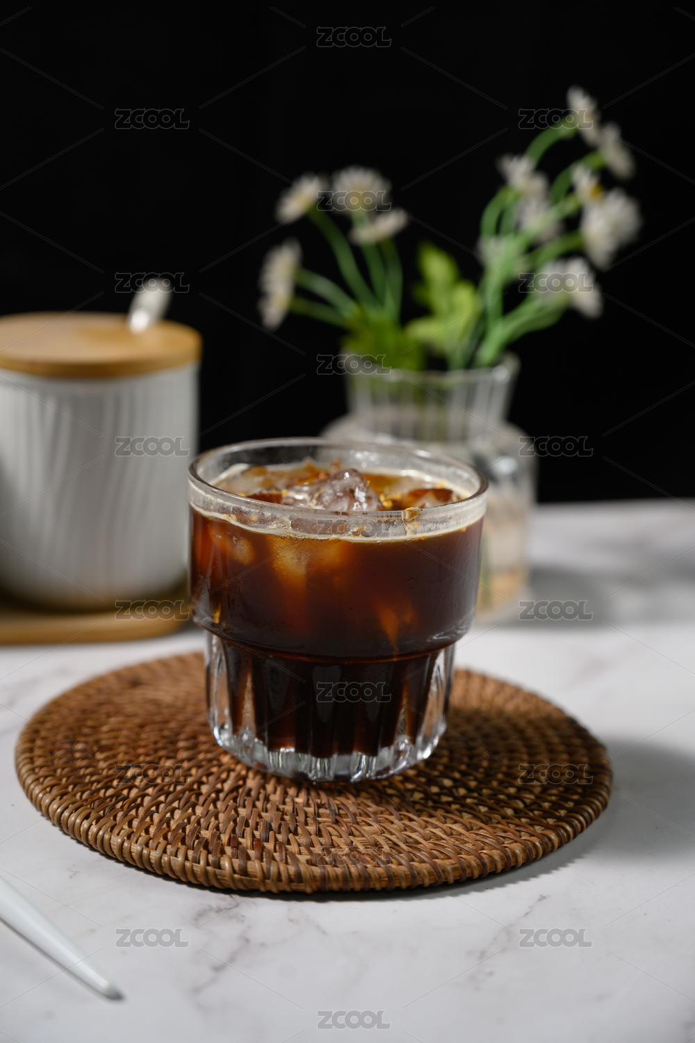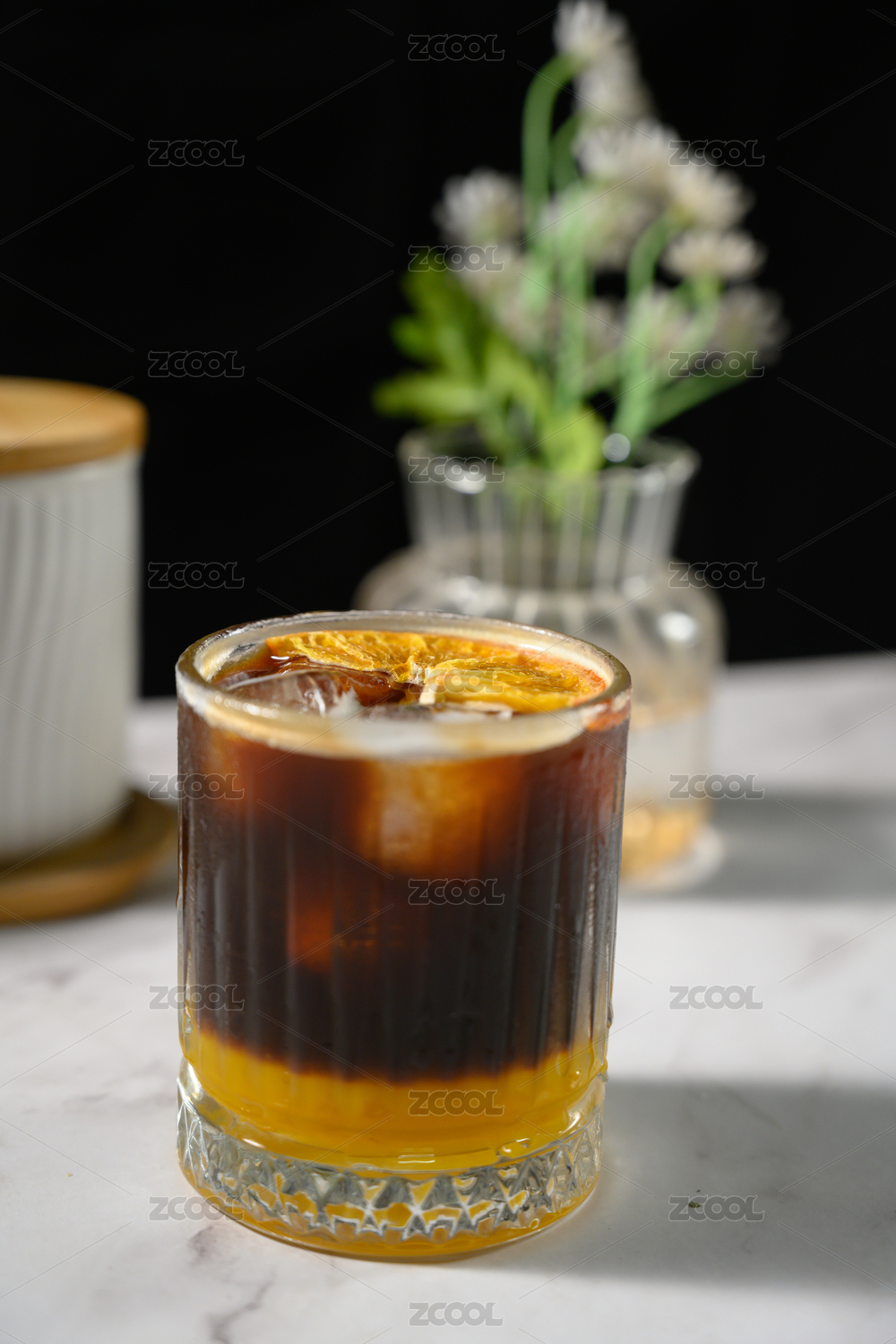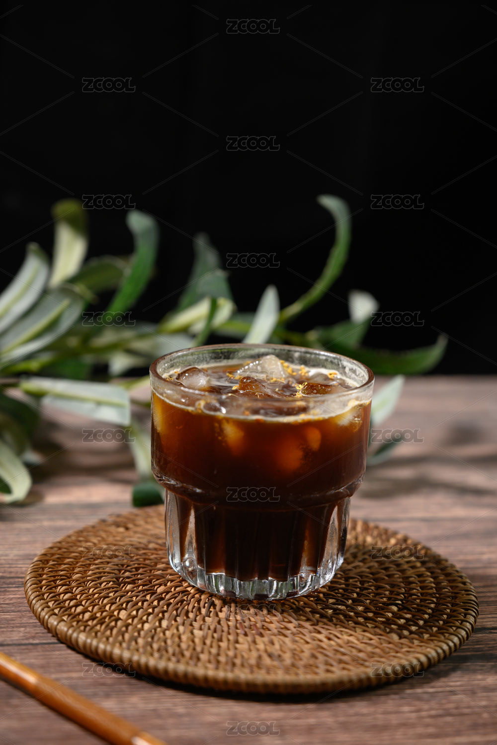 桌面上的玻璃杯里的香气四溢的桂花美式