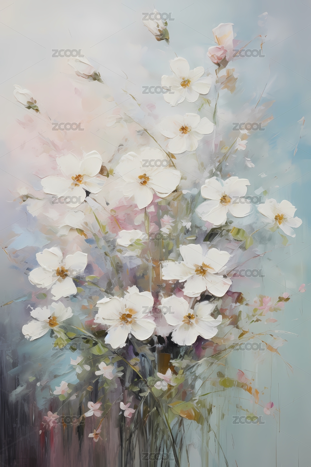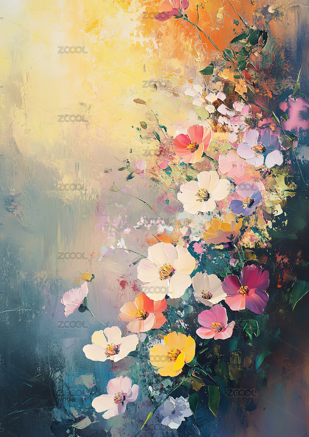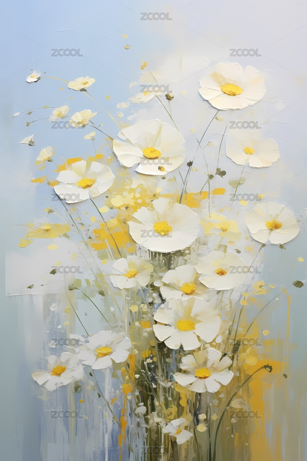 厚涂粗笔触印象派花朵小黄花背景海报装饰画