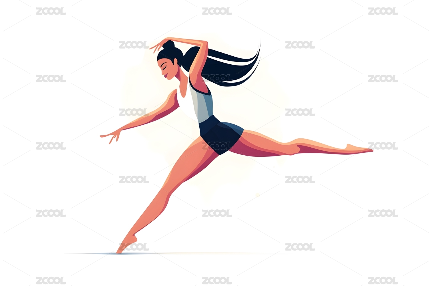 一个年轻女孩在跳艺术体操丝带舞蹈插画