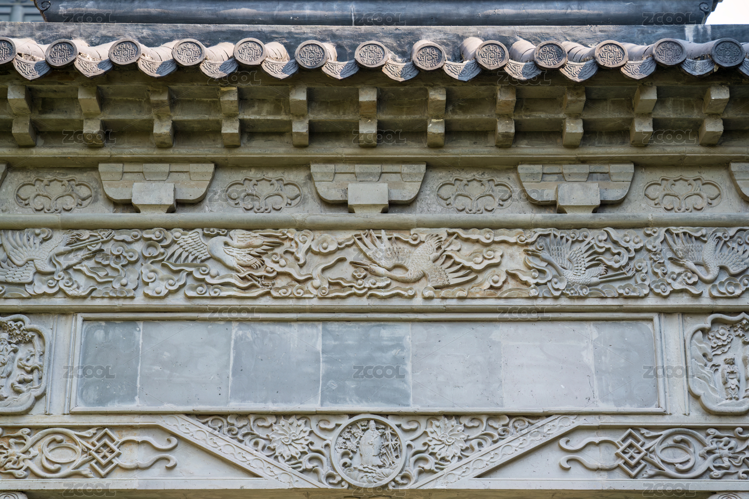 中式传统古建筑牌坊上的精美雕刻