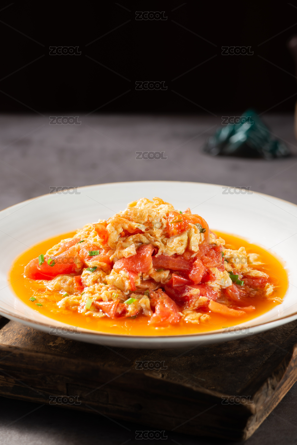 桌面上的盘子里的美味可口的番茄炒蛋