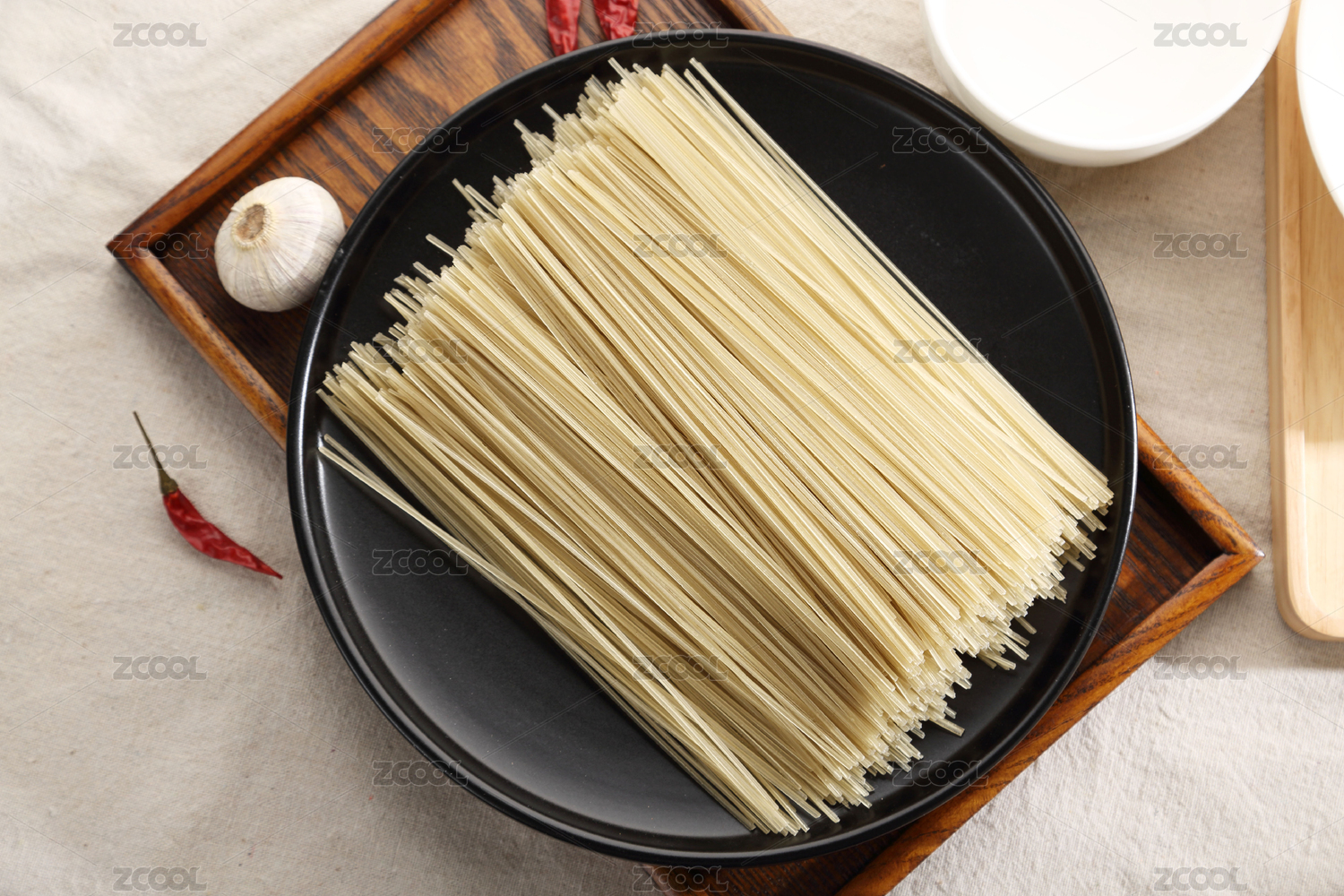 放在复古木盘里的手工米粉