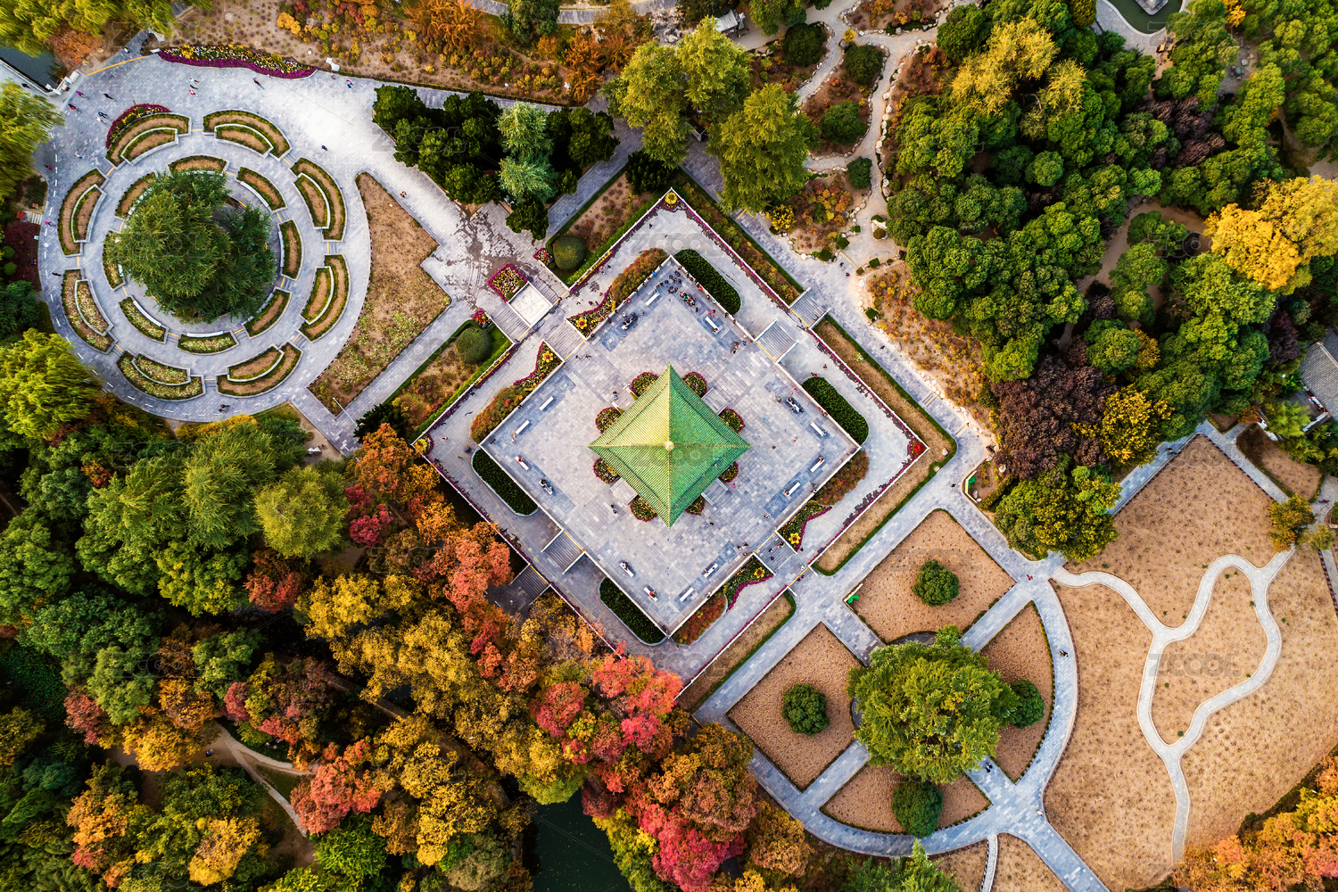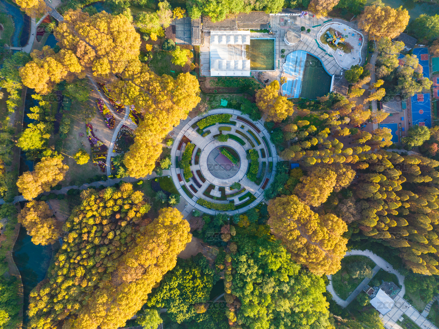 航拍,武汉,公园,解放公园,秋天,秋景,秋色