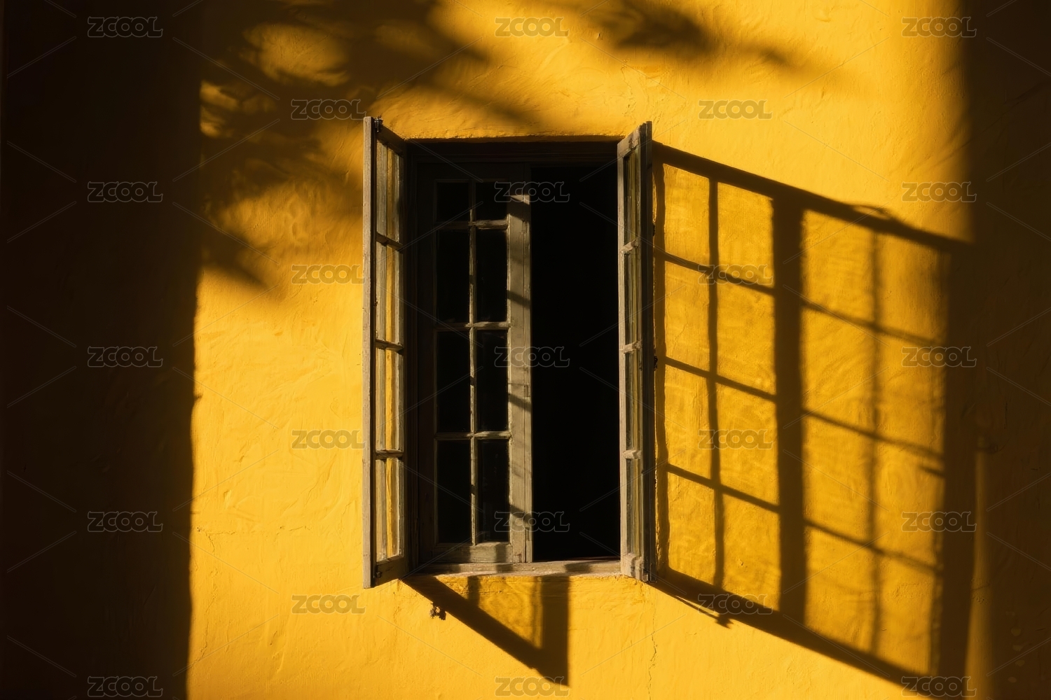 照射在木窗上的光影