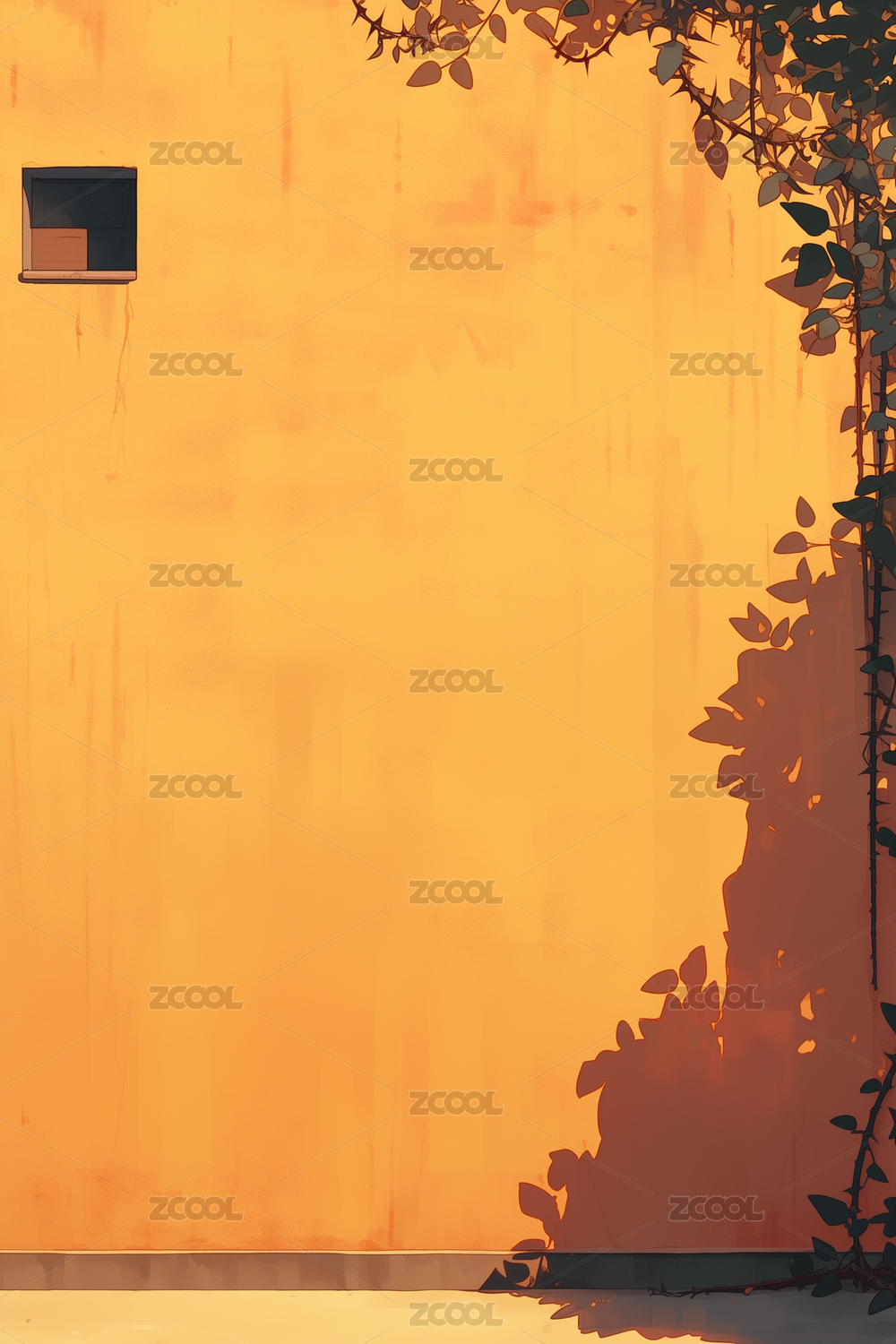 阳光下墙面缝隙的针状荆棘藤蔓插画背景场景