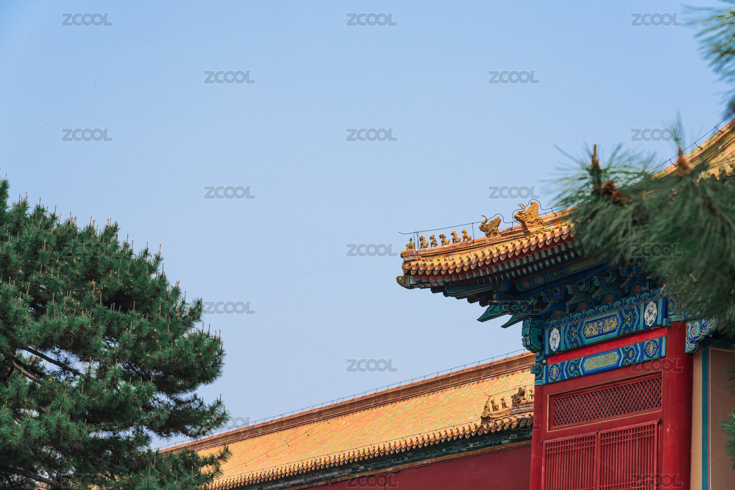 蓝天下的中国北京故宫博物馆的古宫殿建筑