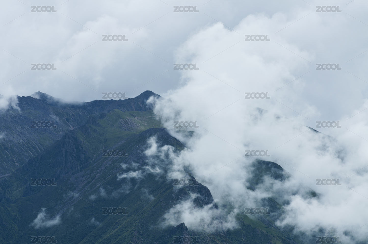 川西高原云雾中的群山和山谷