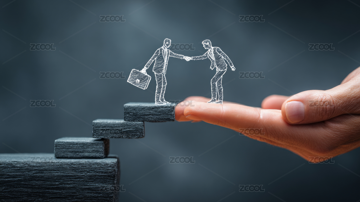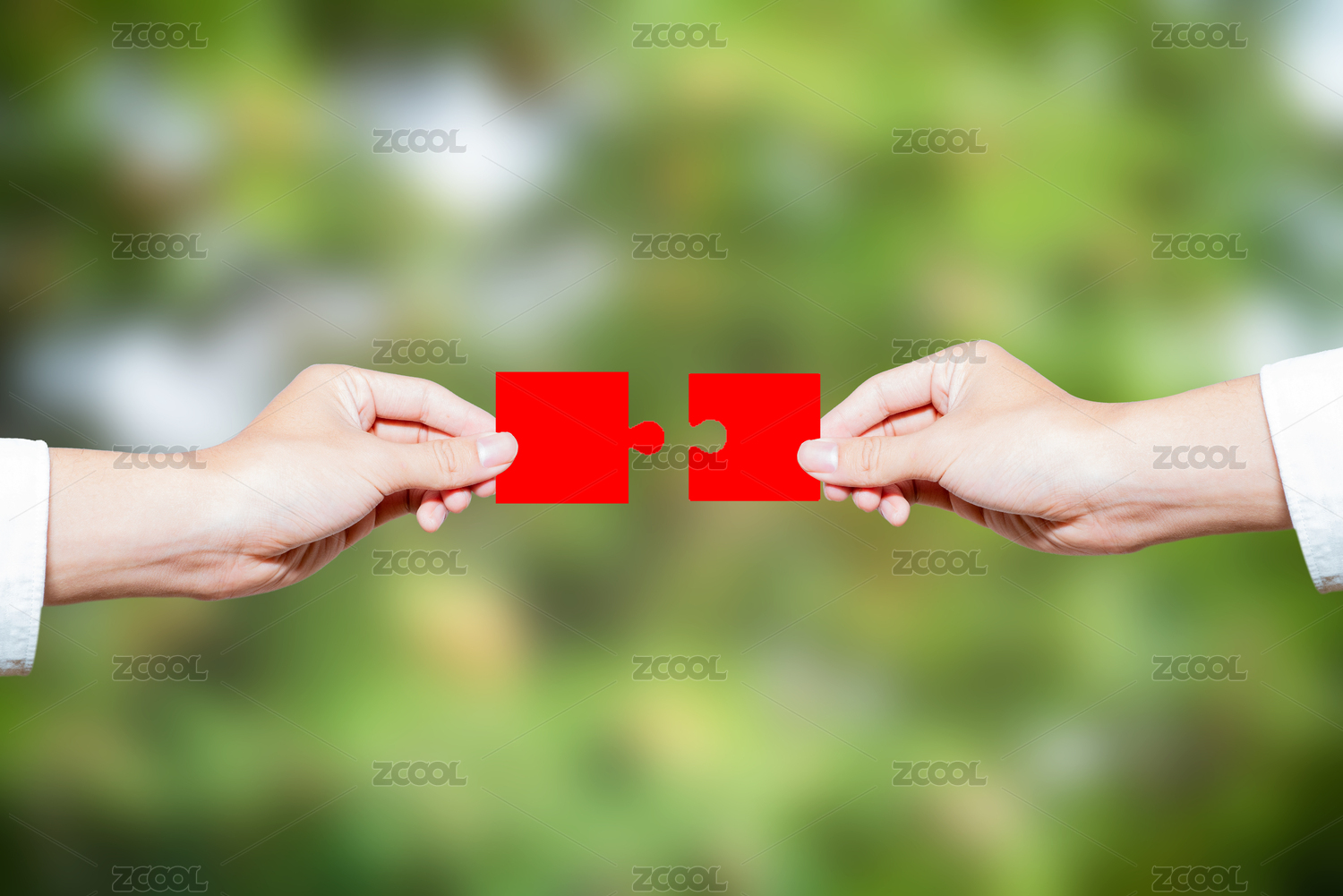 商务人士团队合作手和拼图拼在一起弥补缺点企业共赢队伍办公概念
