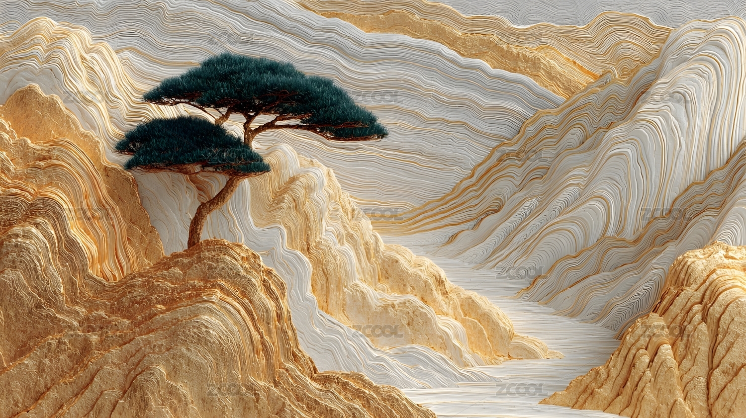 金镶玉山峦古树