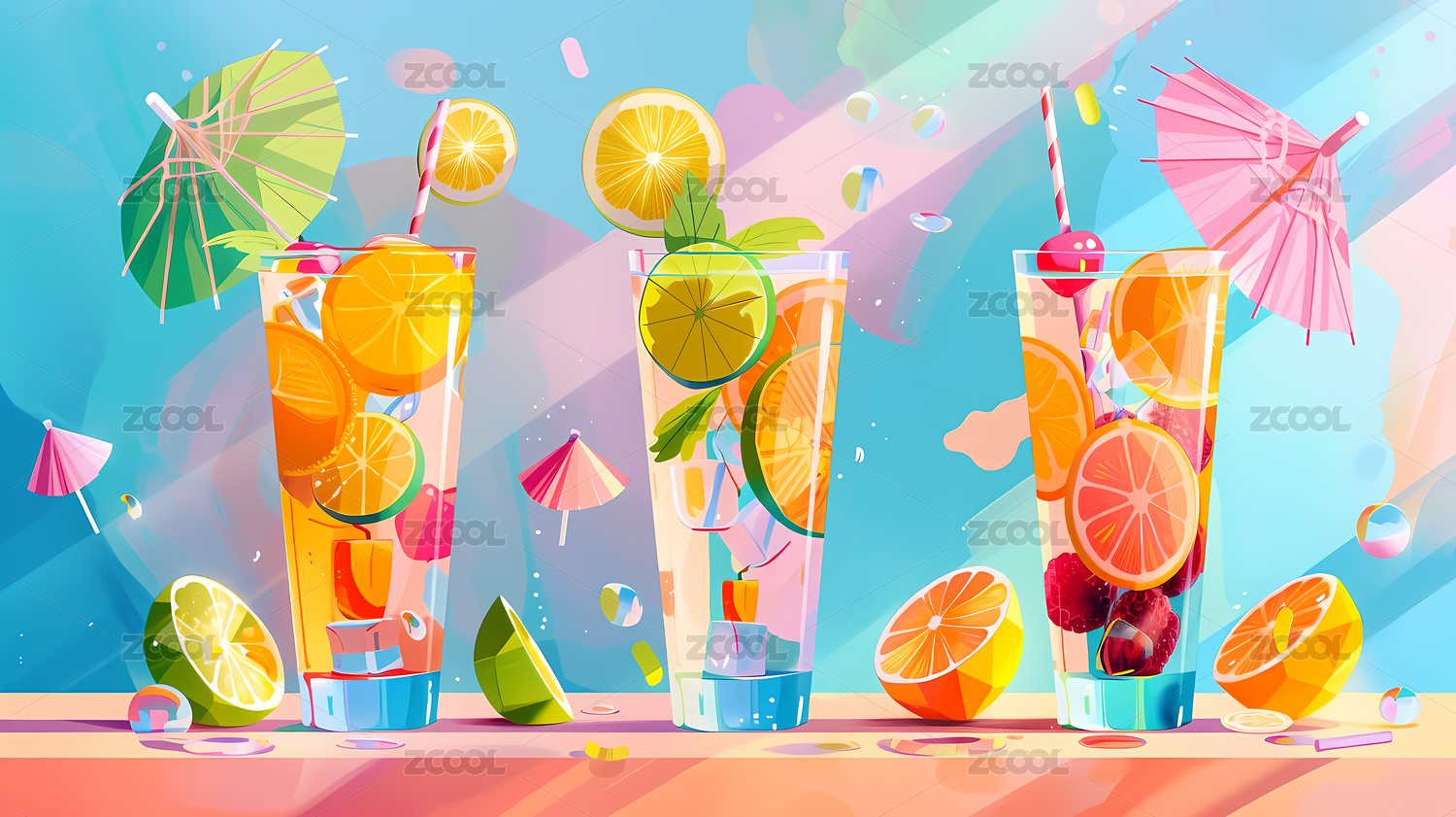 夏季水果茶饮料食品健康夏至节气清凉插画