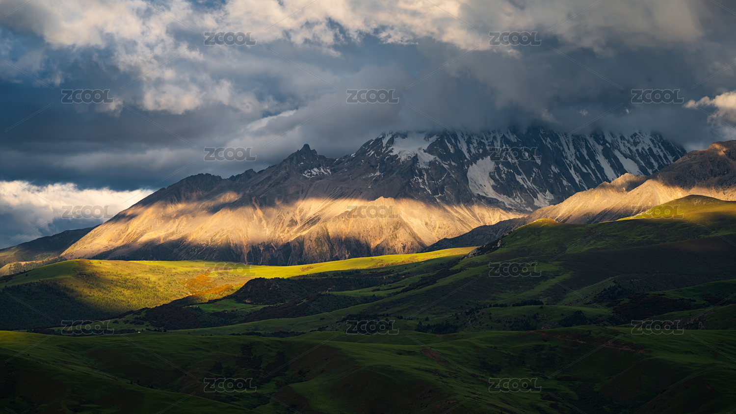 甘肃省甘南藏族自治州甘加秘境-雪山下草原
