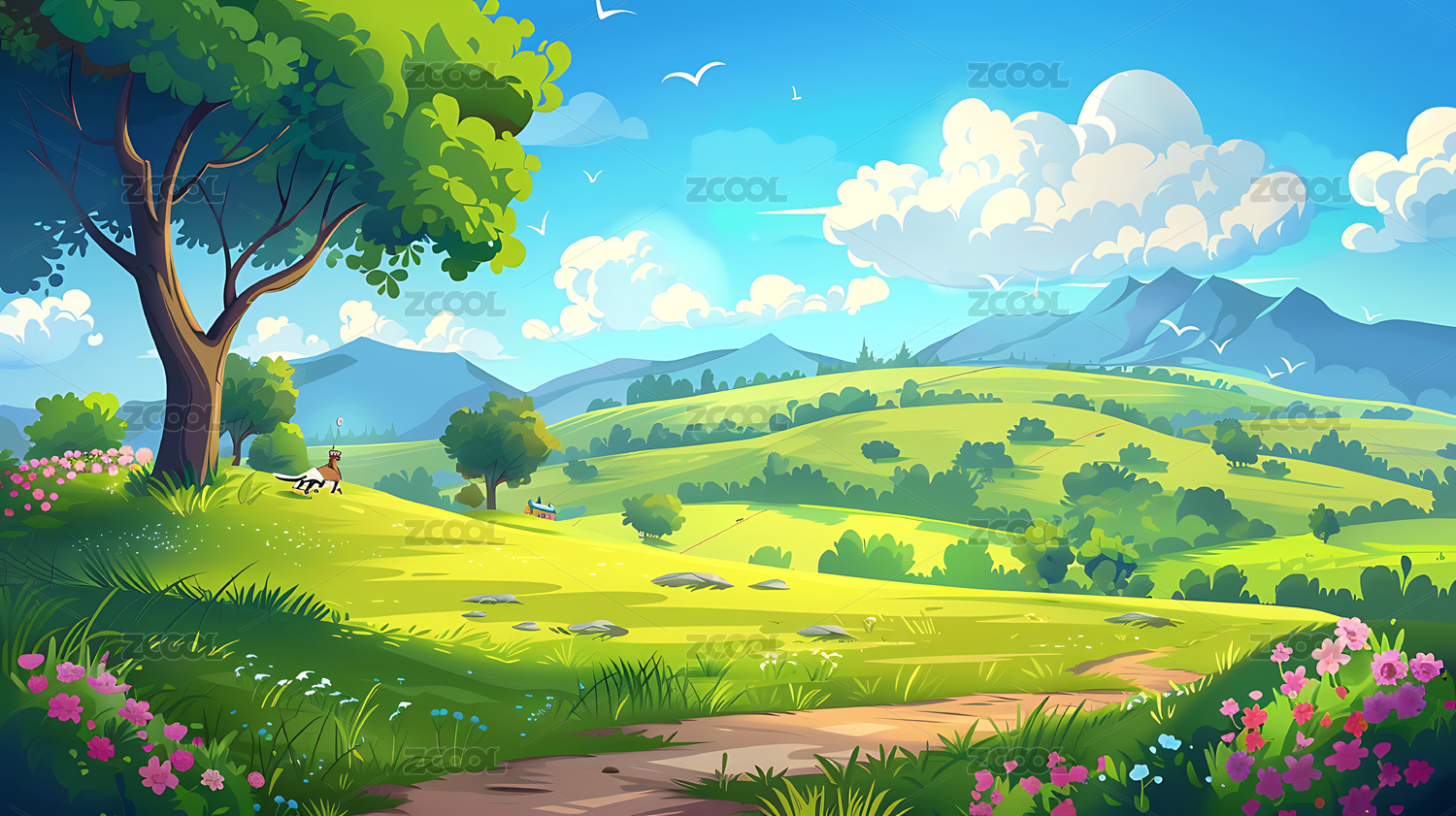 景色,天空,山脉,草地,风光,地形,植物,白云