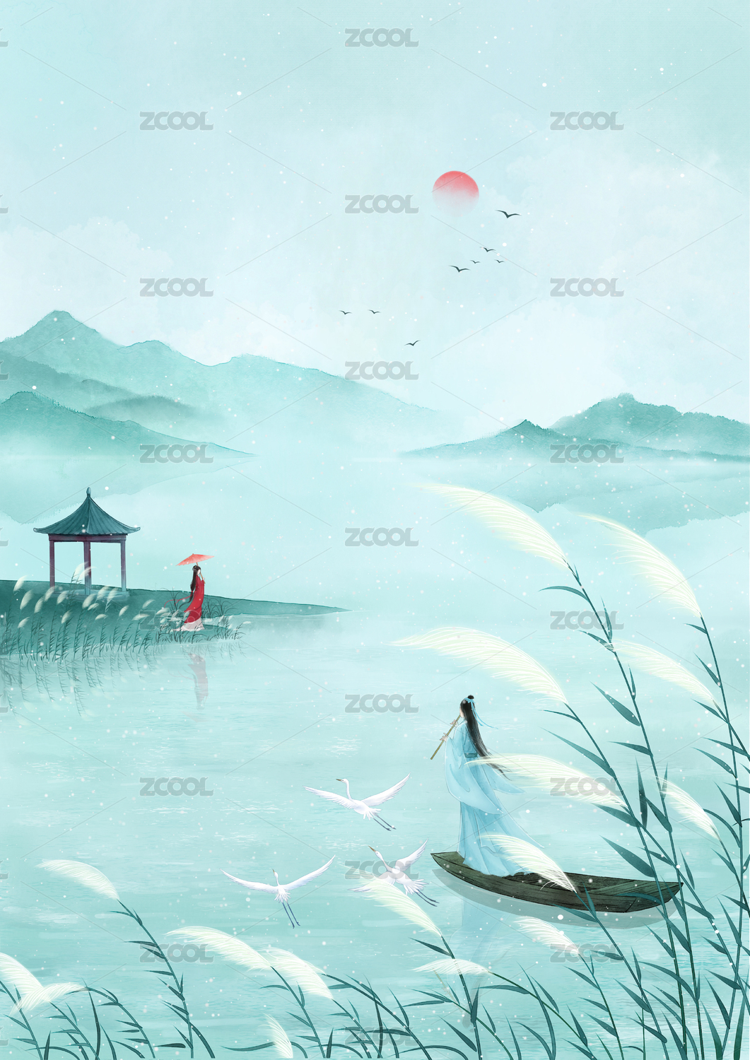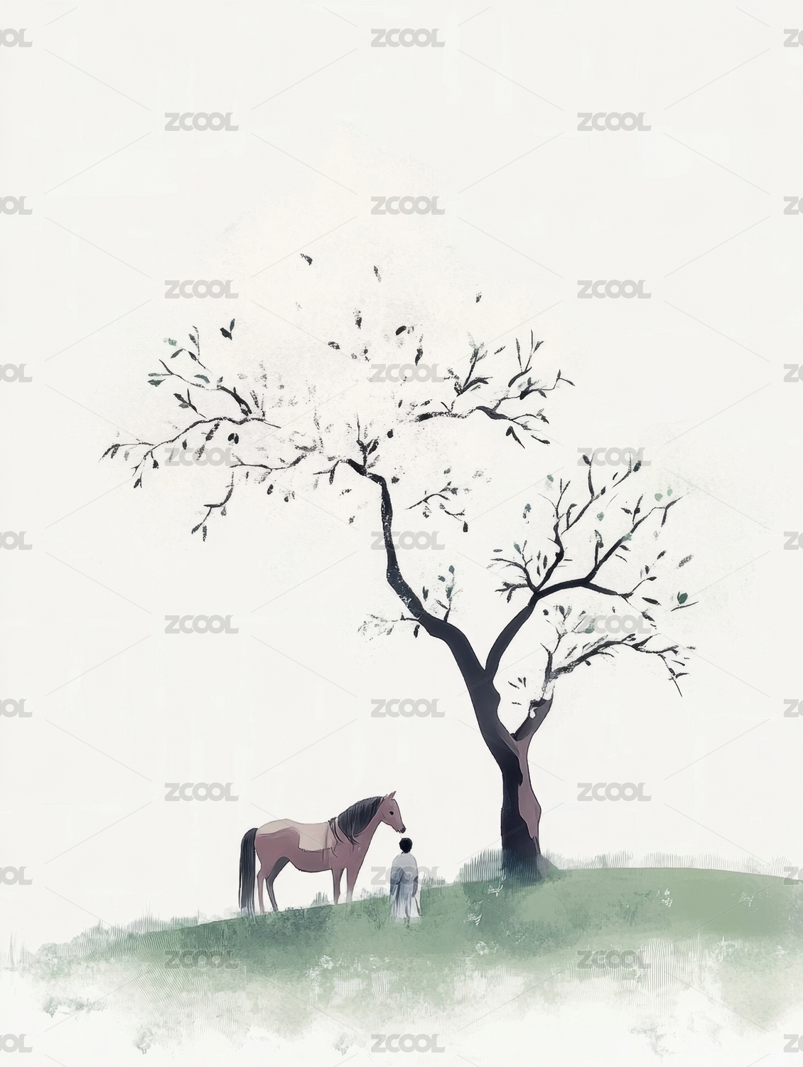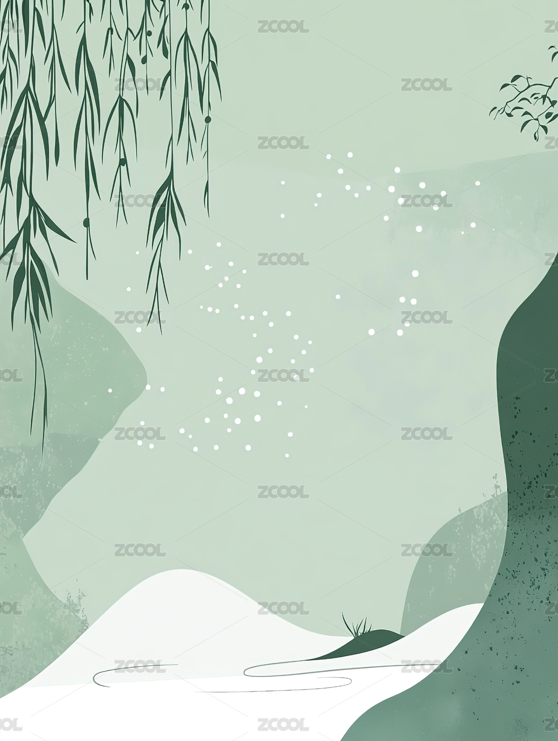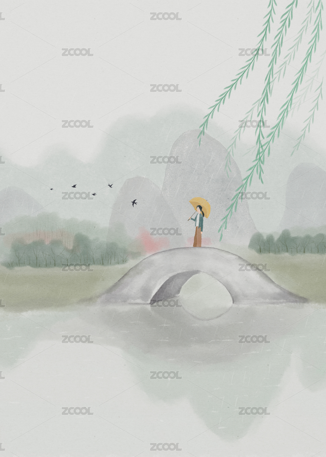 中国风,插画,插图,24节气,树,大自然,清明节,春天,柳树,牧童