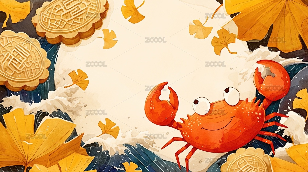螃蟹,大闸蟹,秋天,海鲜,月饼,中秋节,蒸笼,蒸屉,银杏叶,菊花