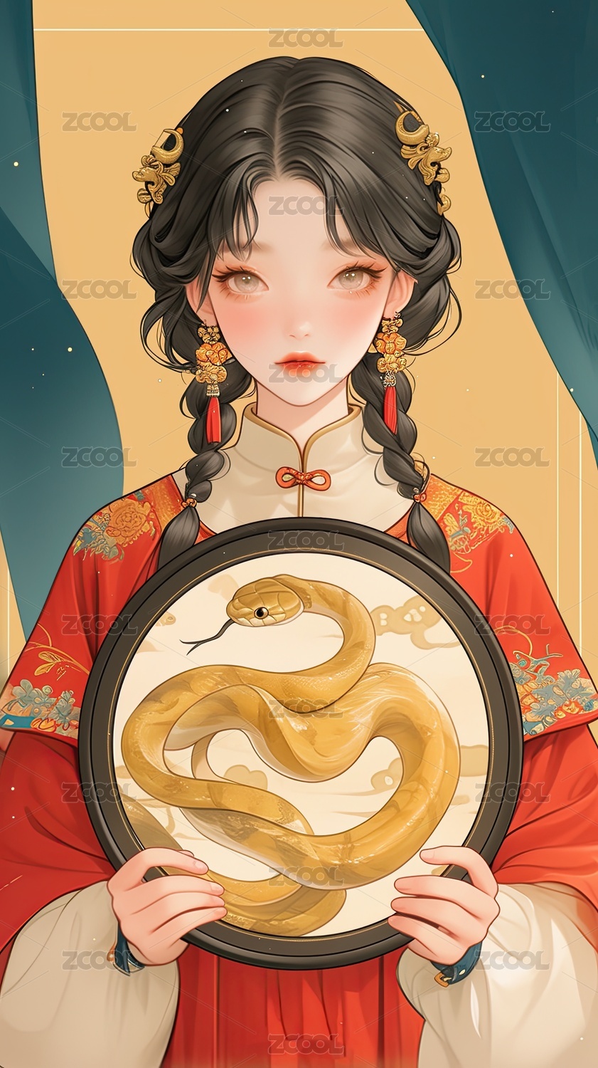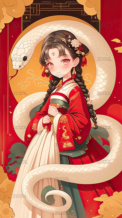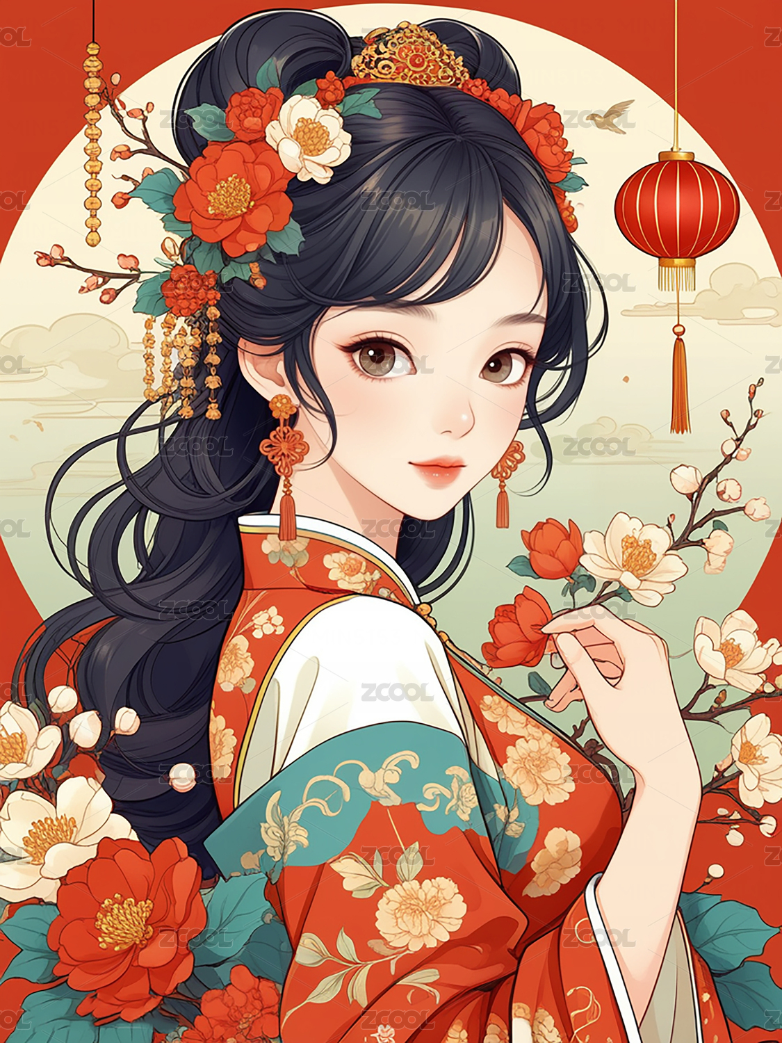 动物,自然,春节,新年,生肖,庆祝,礼物,灯笼,女孩,快乐
