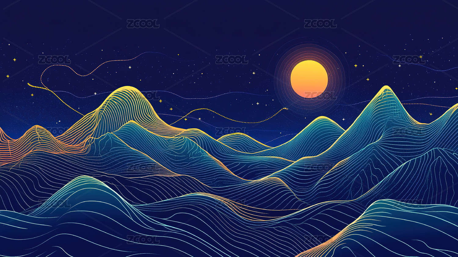抽象线条山水插画