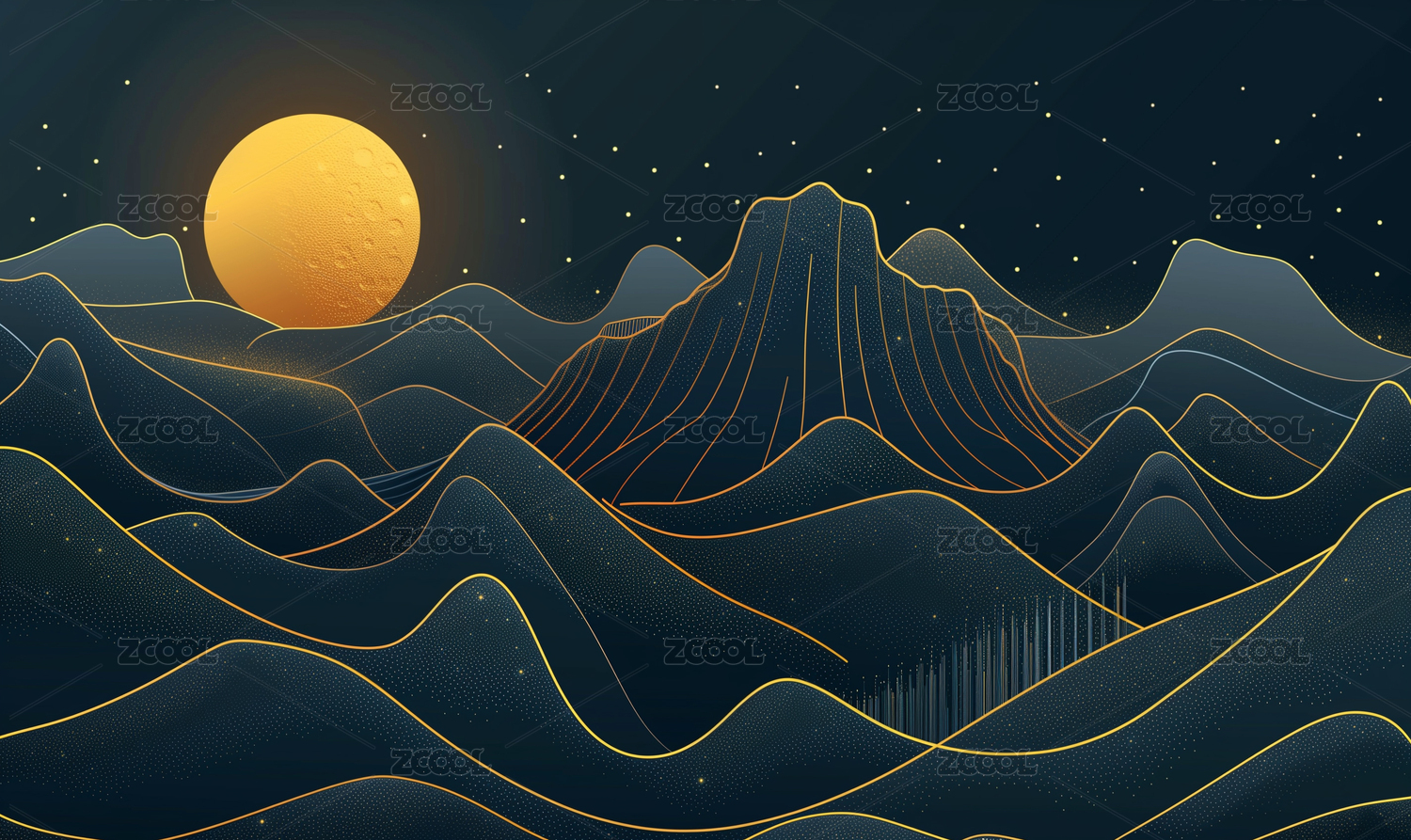 宁静山峦与明月