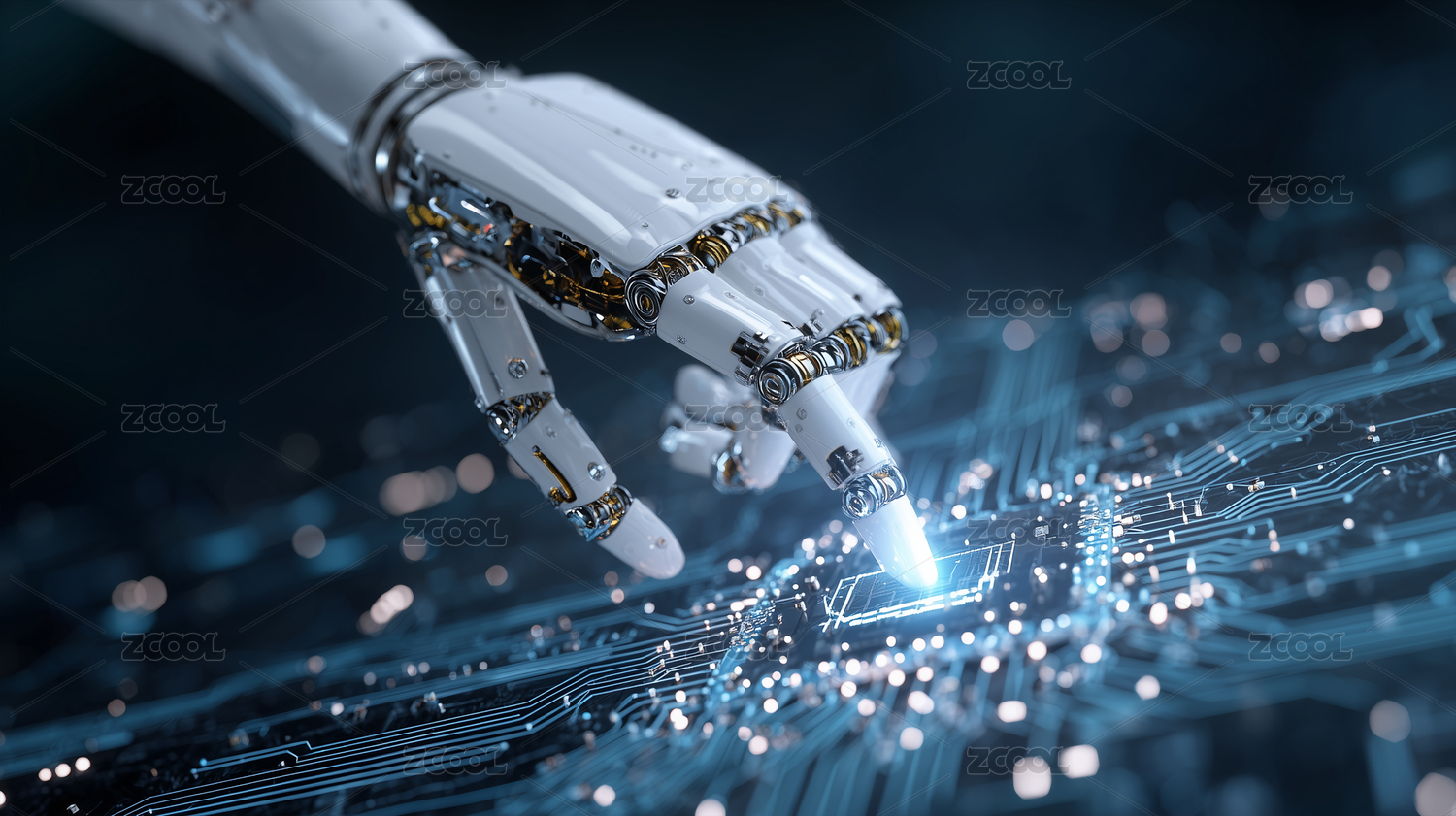 人工智能机器手触摸芯片上的电路板