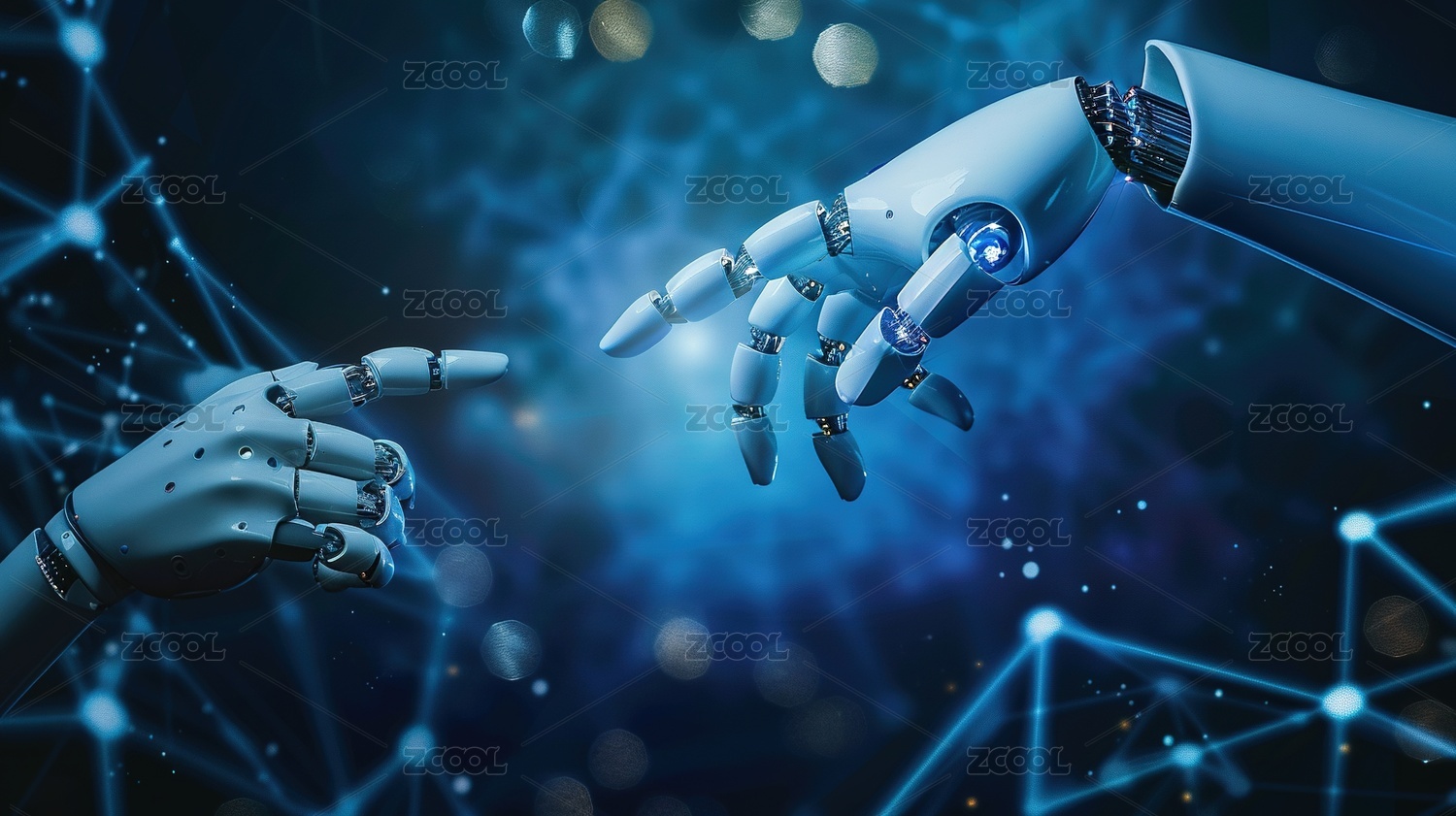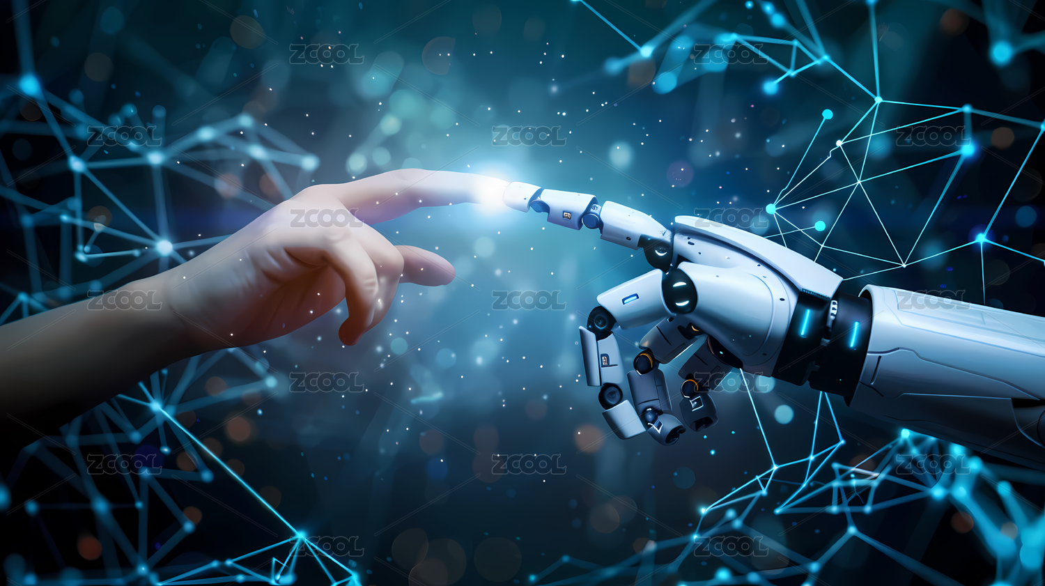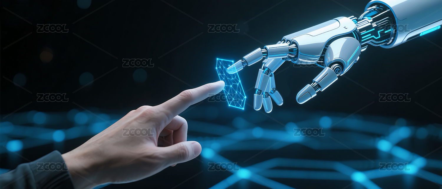 人类手触碰机械手臂科技背景