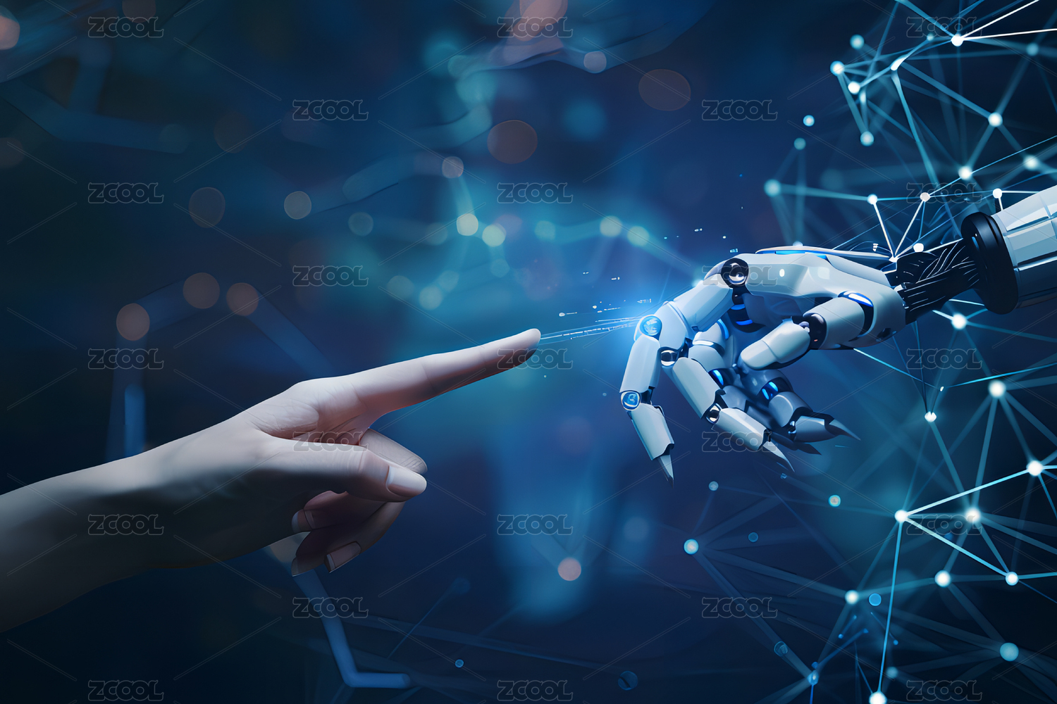 机械手触碰未来科技界面