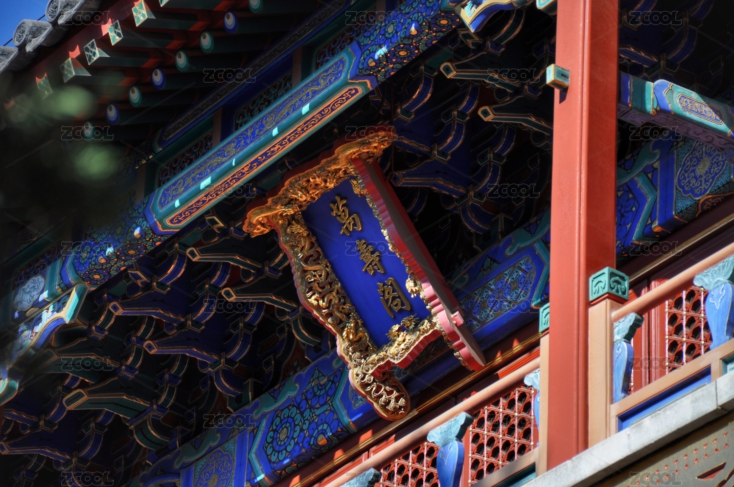 中国山东省济南市趵突泉景区内古建筑彩绘斗角