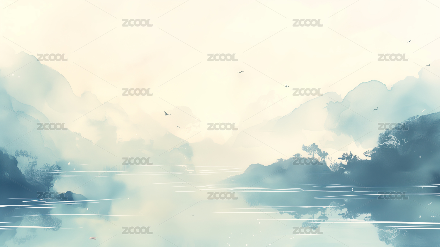 中国风山水水墨画