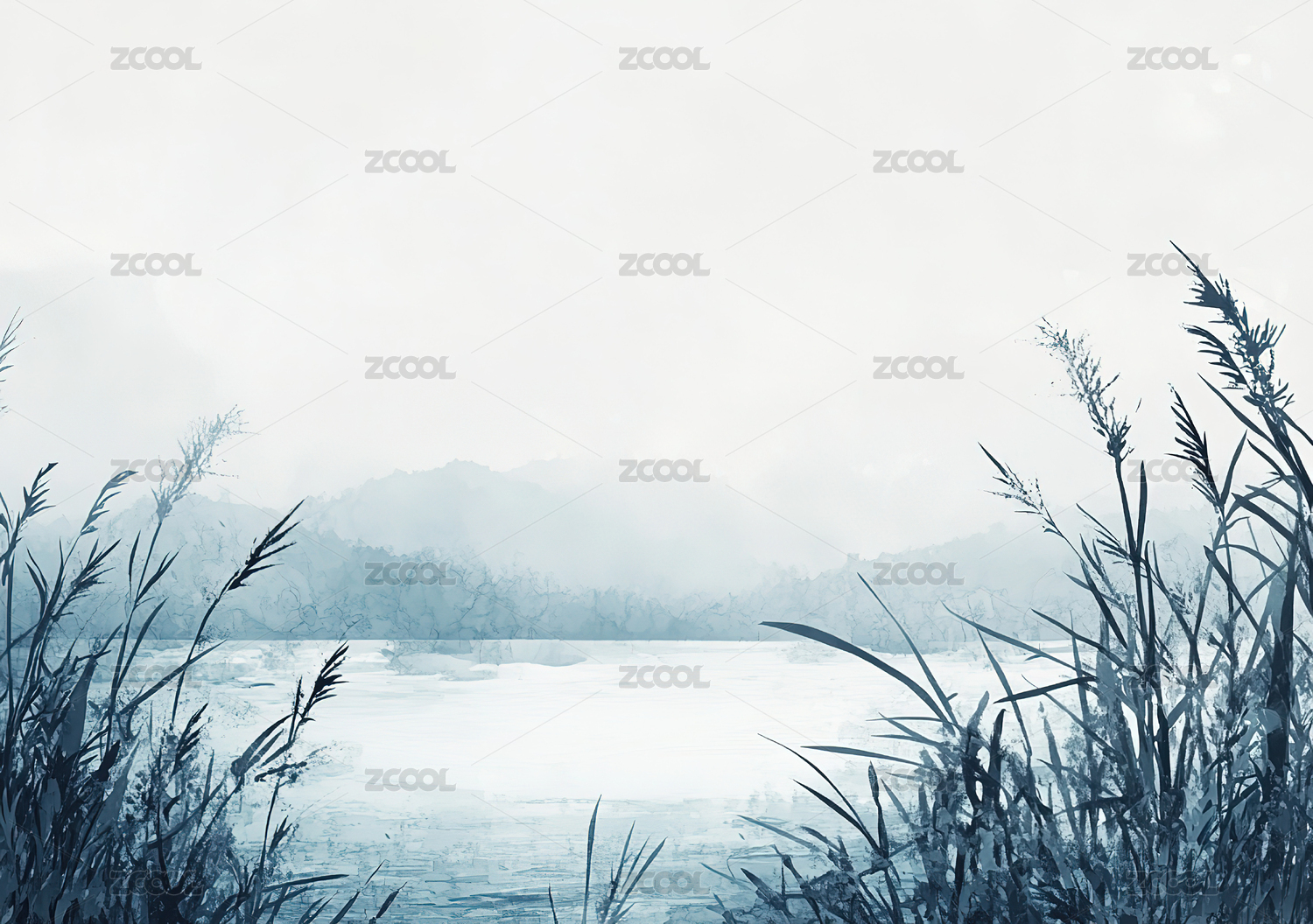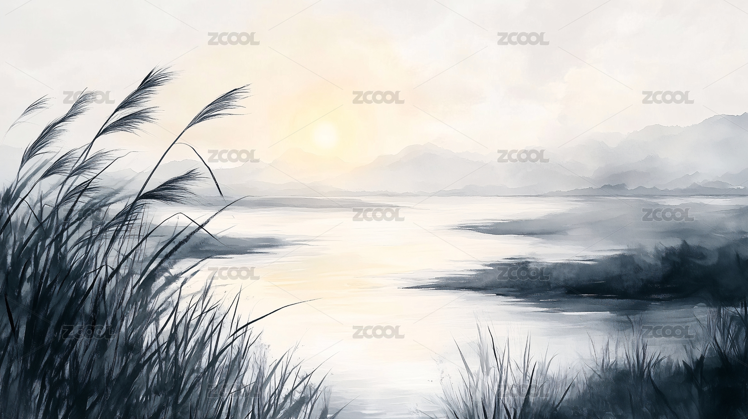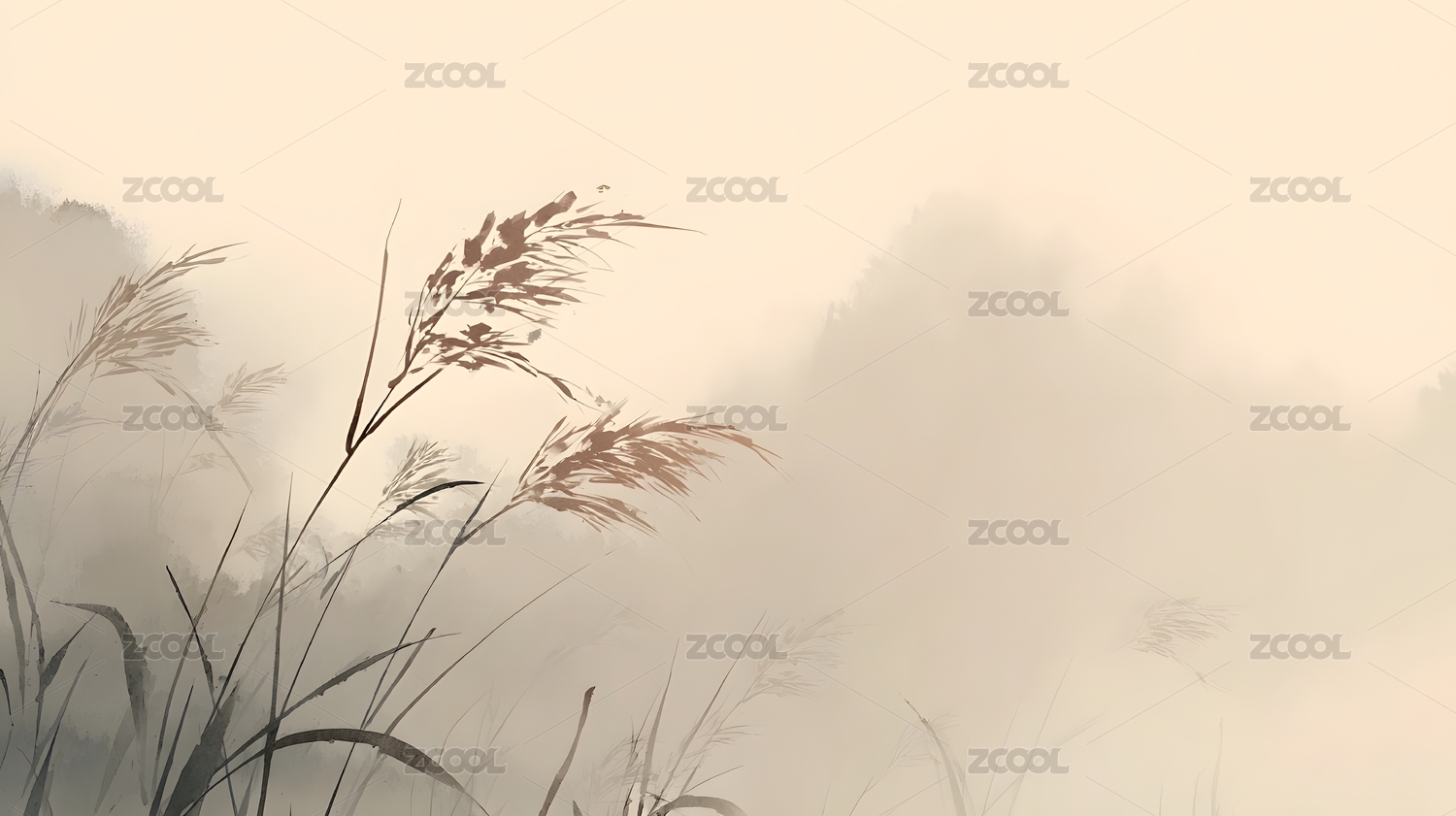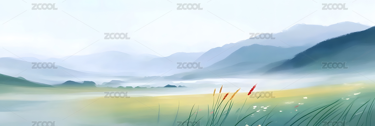 水墨风平原