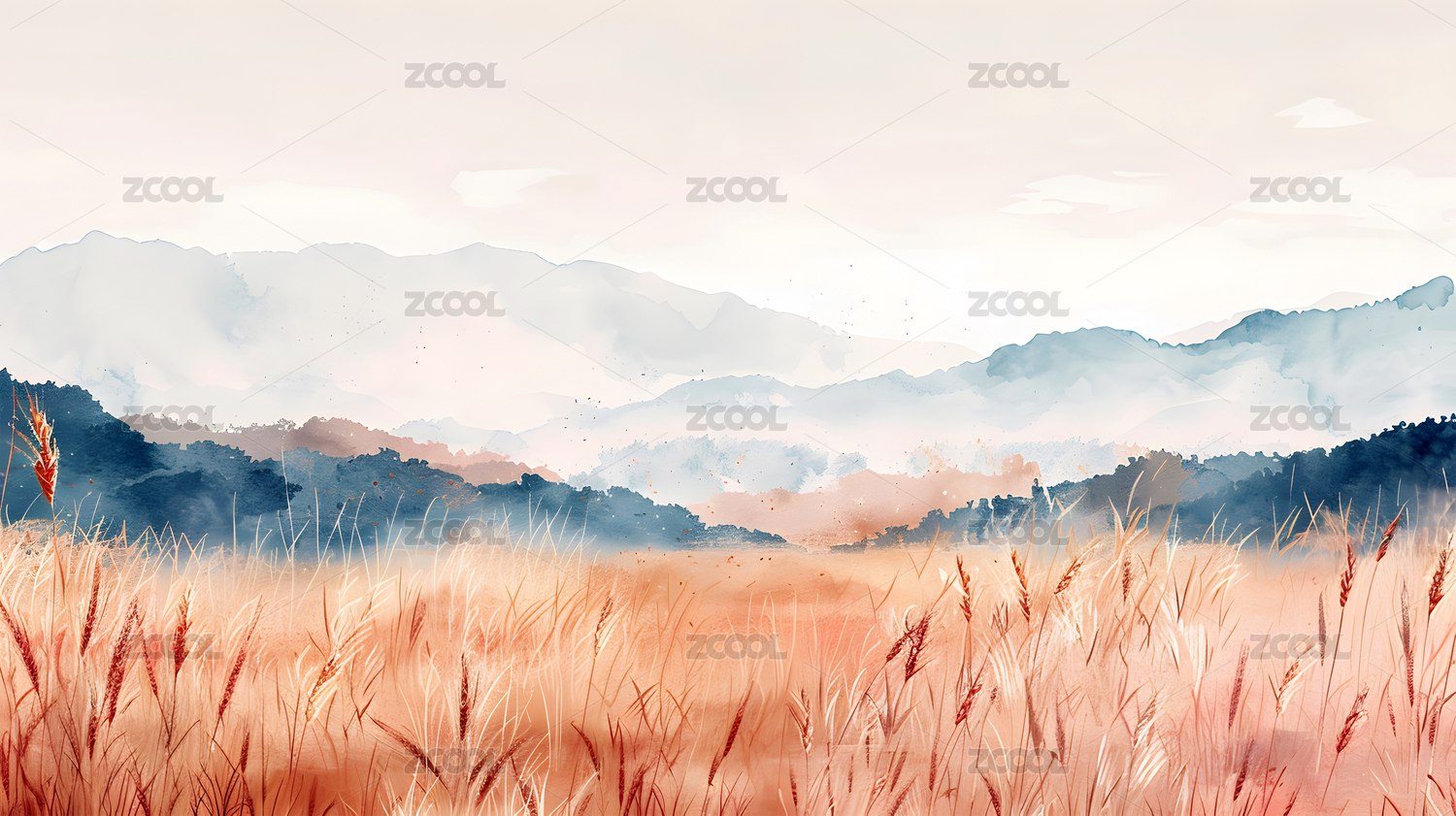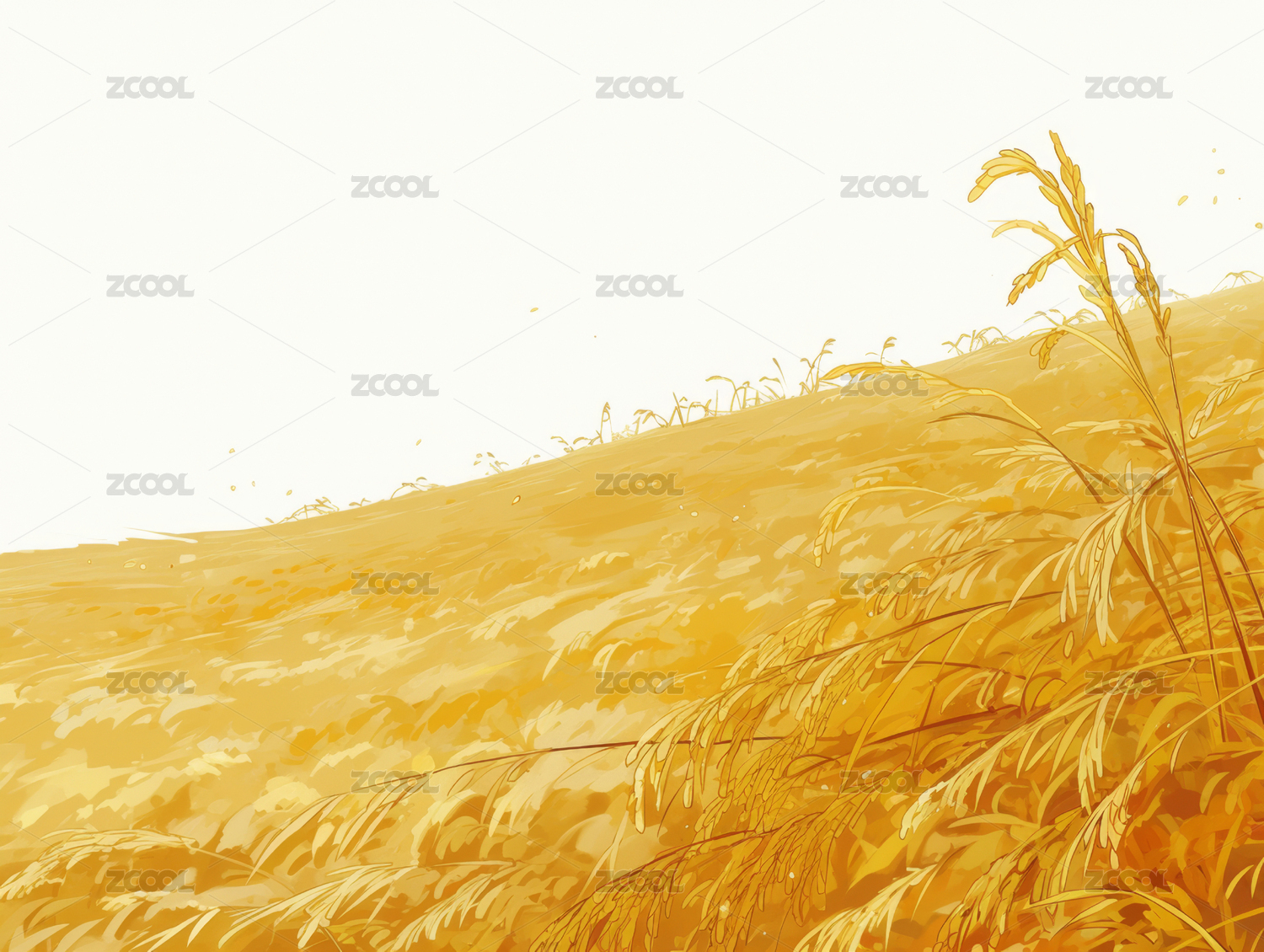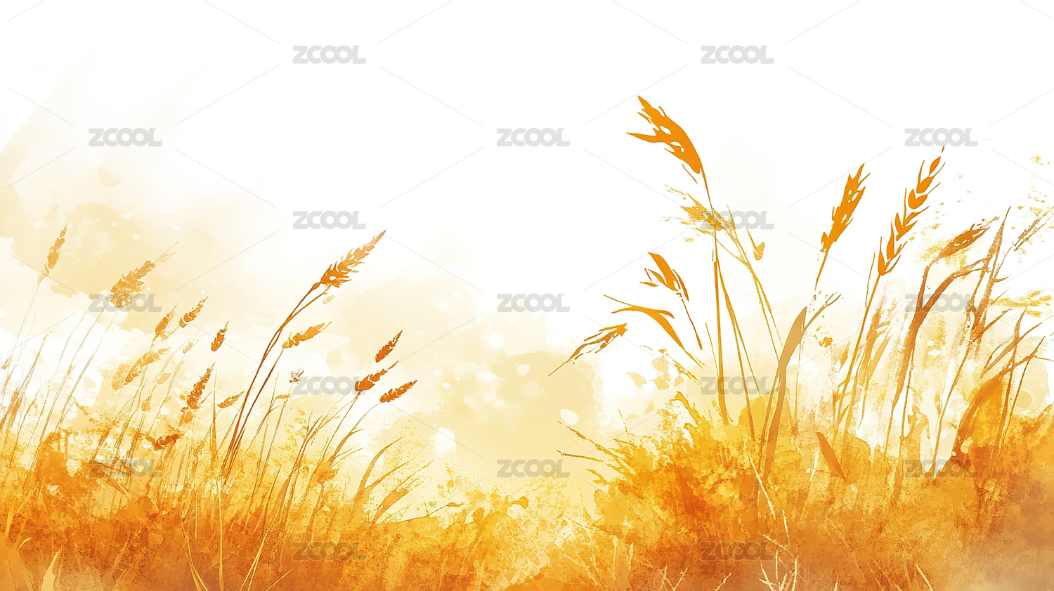 中国风秋天插画农田麦穗暖色风景壁纸
