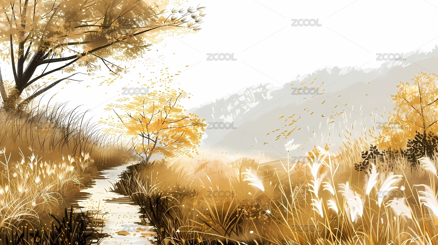 中国画秋色草迹插画海报背景