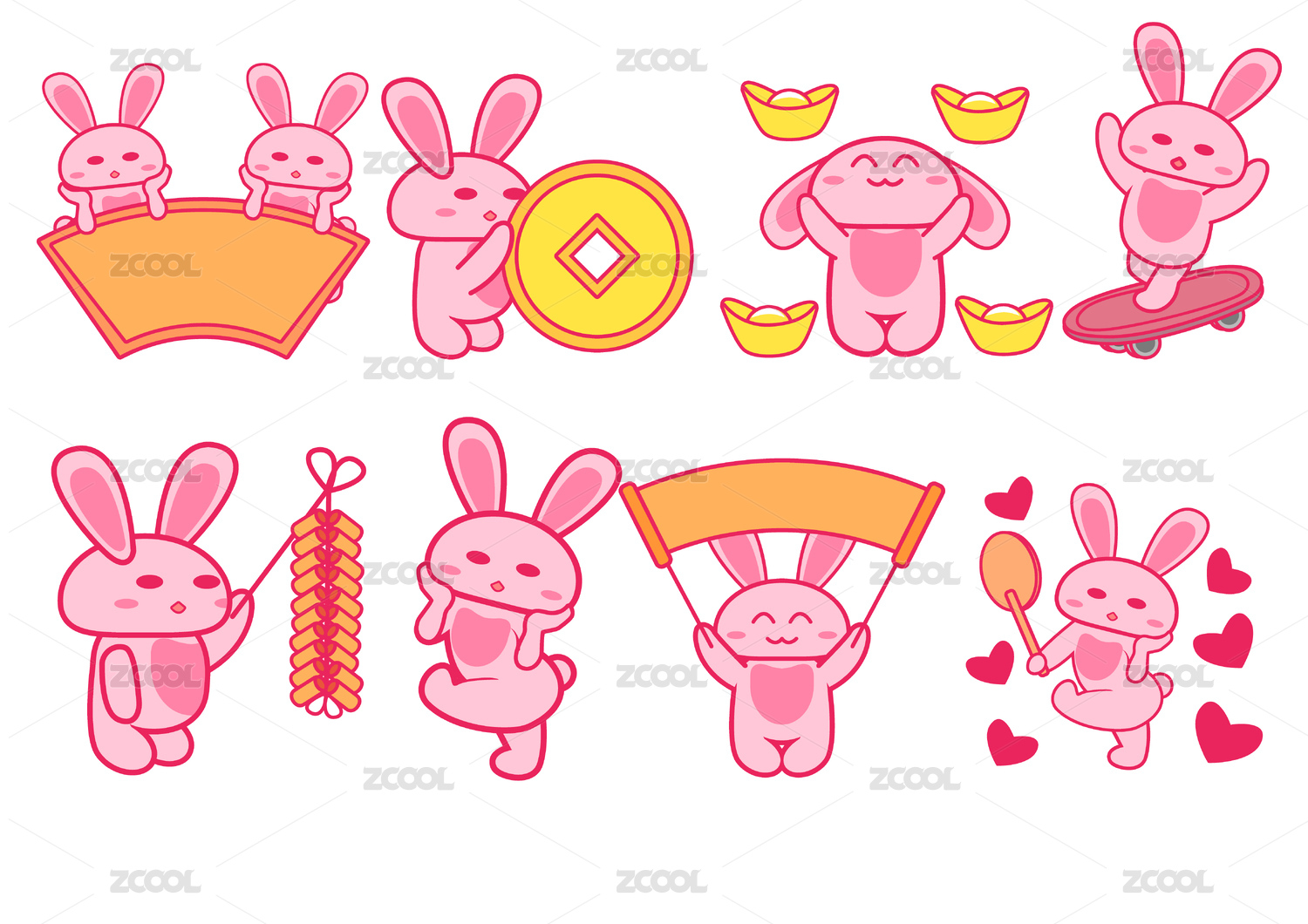 兔年迎春节贺岁插画 逛灯笼买灯笼